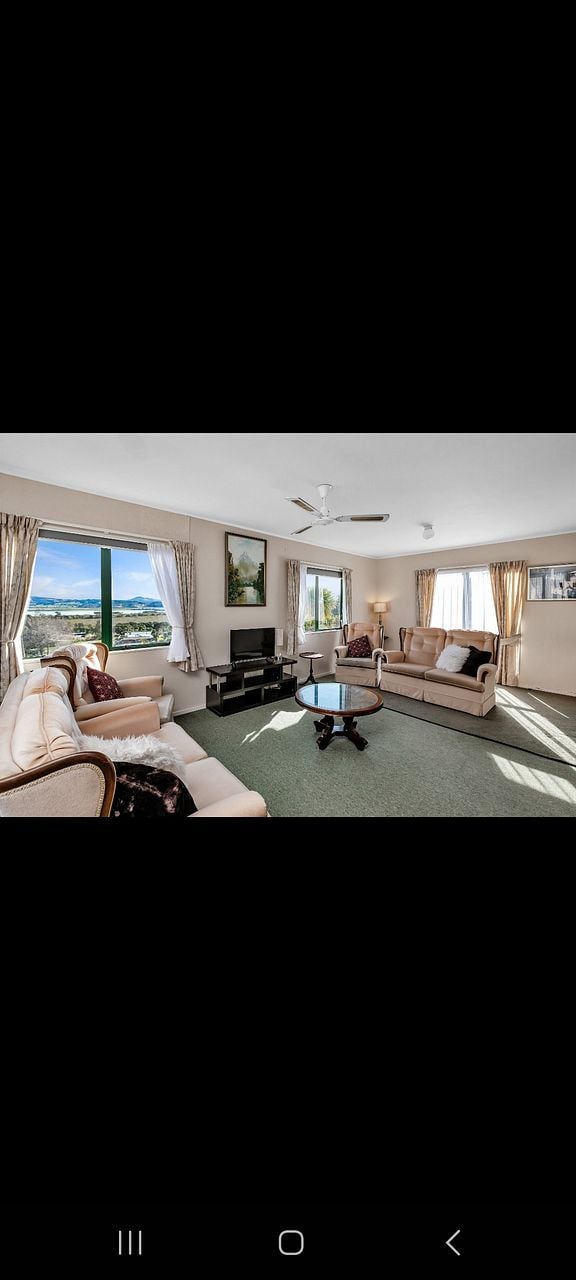 -Lounge ceiling fan and newly installed heatpump/Air conditioning unit.