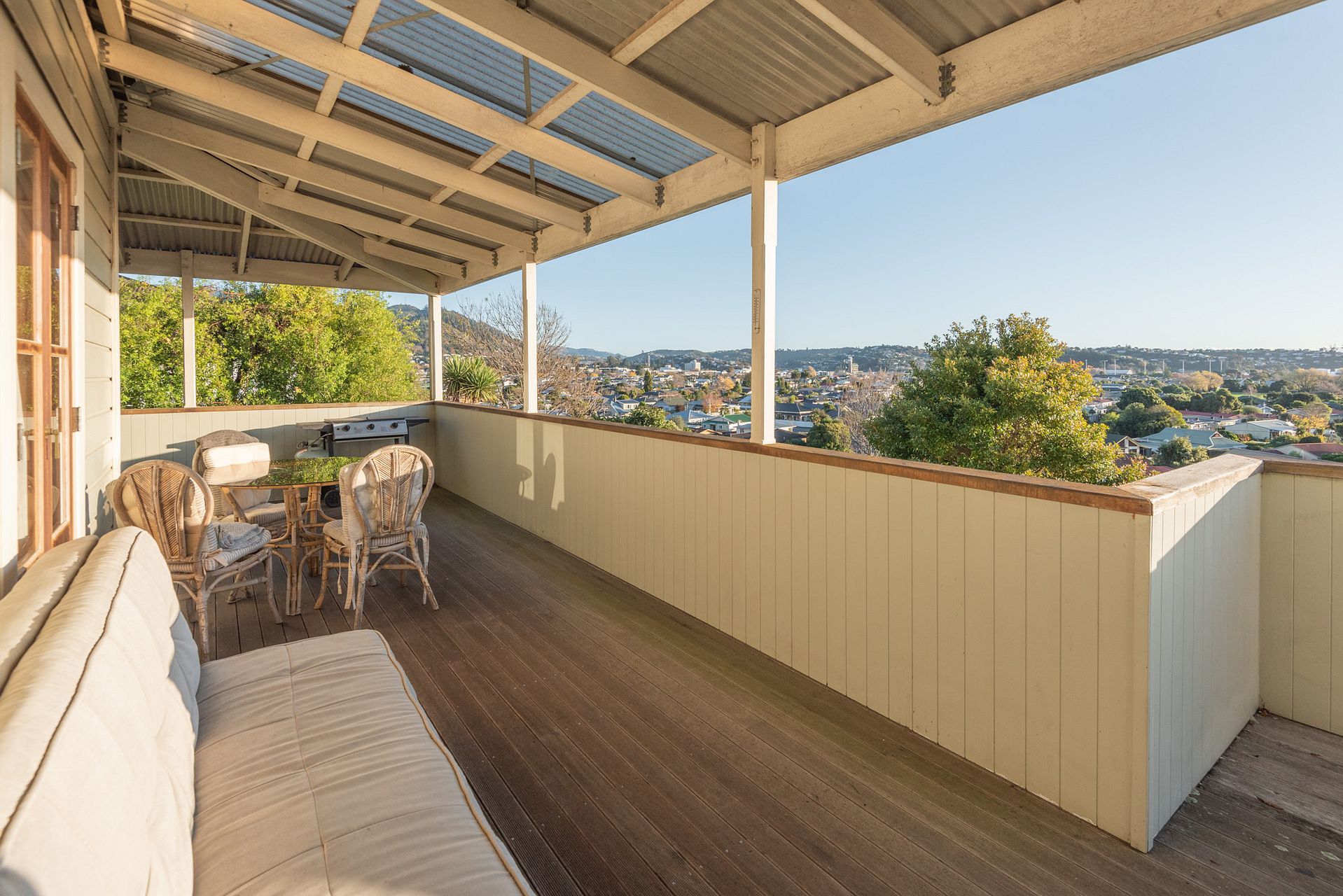 There are three double, bedrooms, a fully furnished sunny villa with superb views over the Haven situated in The Wood above Founders Park. It has a good sized kitchen -dining with French doors opening to the brick patio, separate lounge with consented wood burner, bathroom with shower and bath, separate toilet, an additional toilet off the garage. Enjoy the large covered sunny wrap around deck overlooking the Haven to the mountains beyond. There is a large heat pump in the hallway, wood burner in the lounge and HRV system. The drive in double garage with laundry area leads off the main hallway. The hillside property is terraced garden and is not fully fenced. It is pathway access to Atawhai Drive bike and walkways.