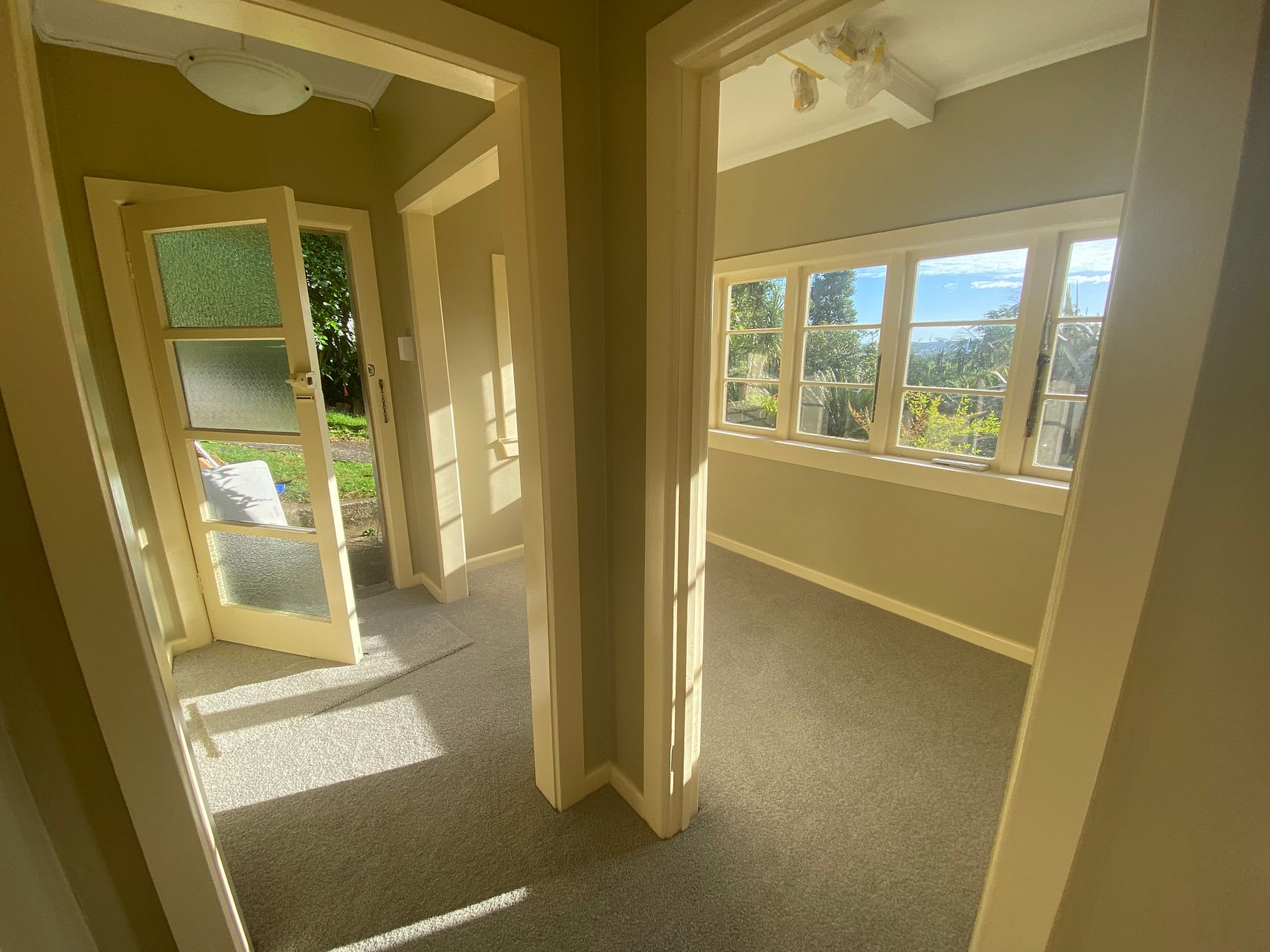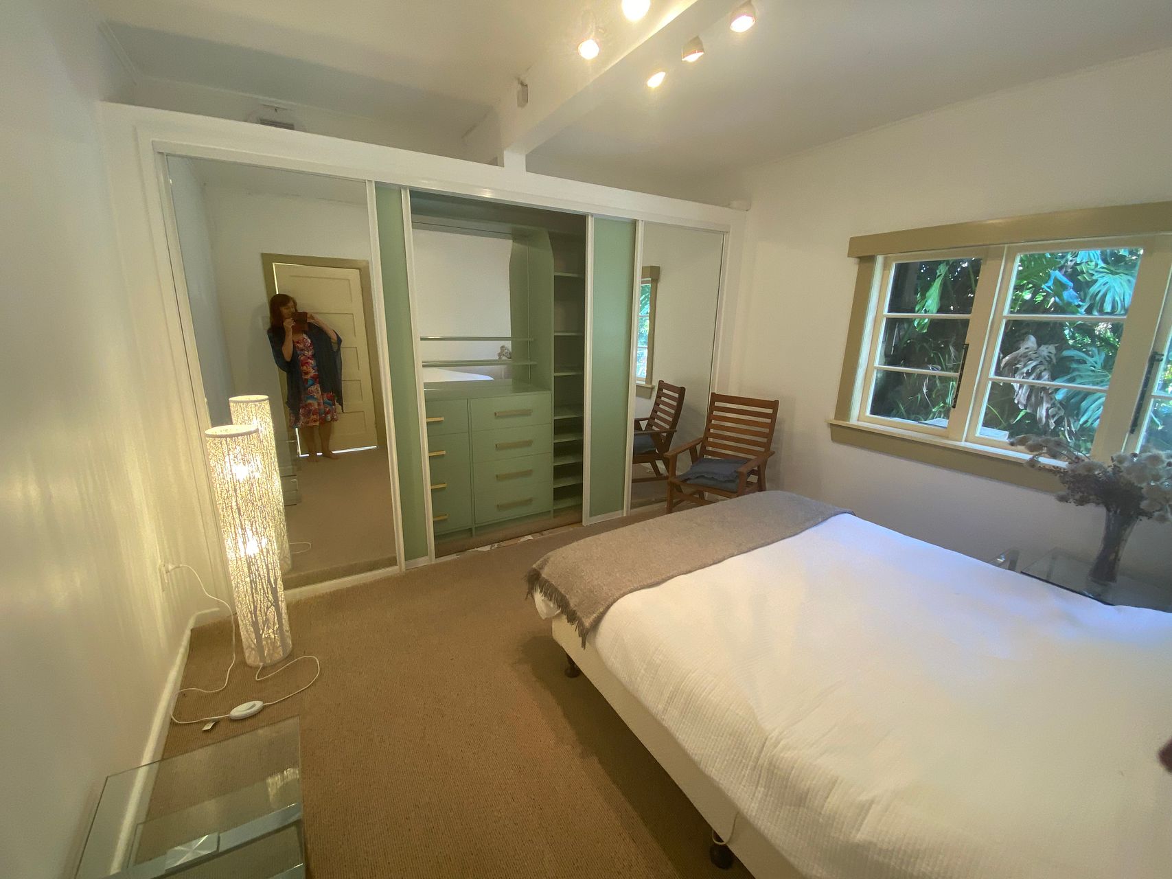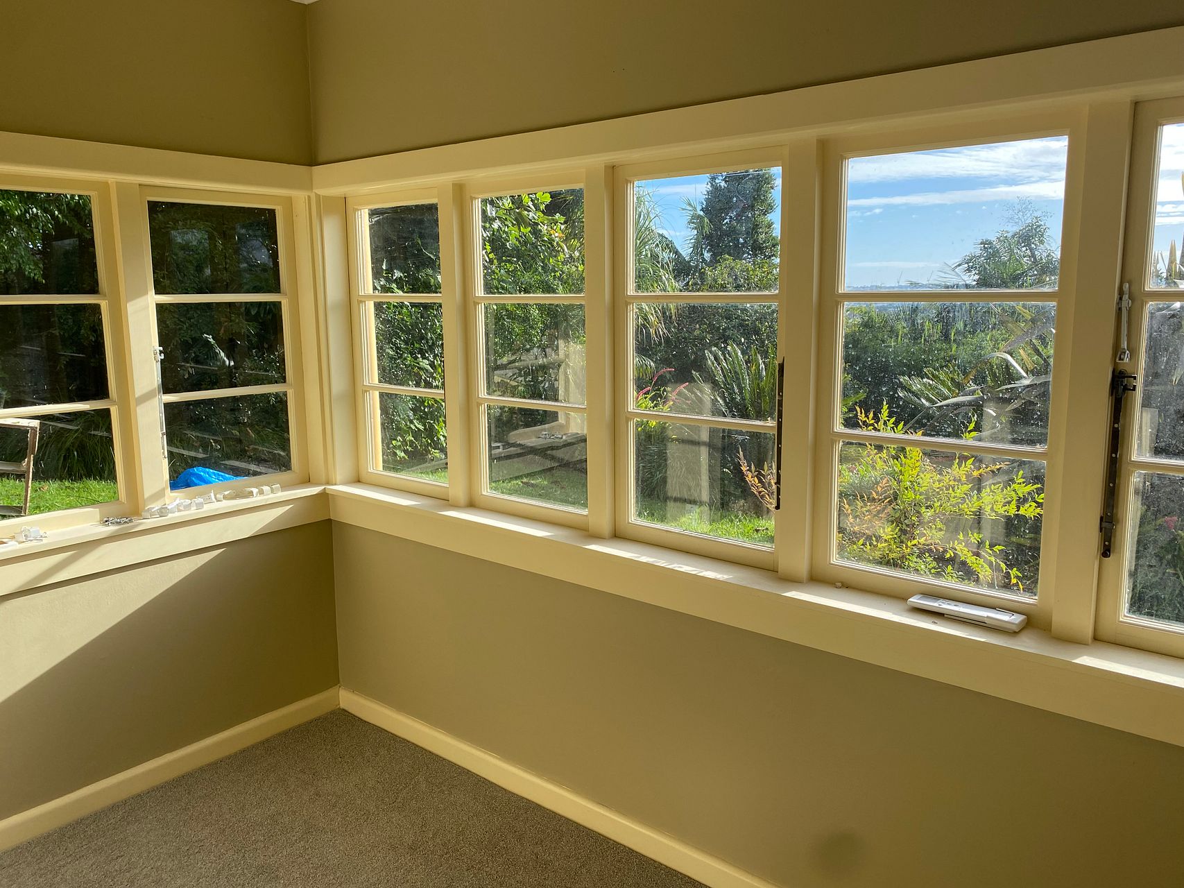 Fully refurbished one bedroom-plus-sunroom flat in leafy garden retreat. Completely new kitchen with stone bench, new dishwasher and new fridge, new kitchen flooring. Double bedroom with new beautiful Boston wardrobe. New carpets just laid. Flat has heat pump and HRV ventilation. French doors open out to private garden, on the sunny north east facing slopes of Mt Albert, - a lush garden paradise!. Views to city, Mt Eden - and even Rangitoto Island!