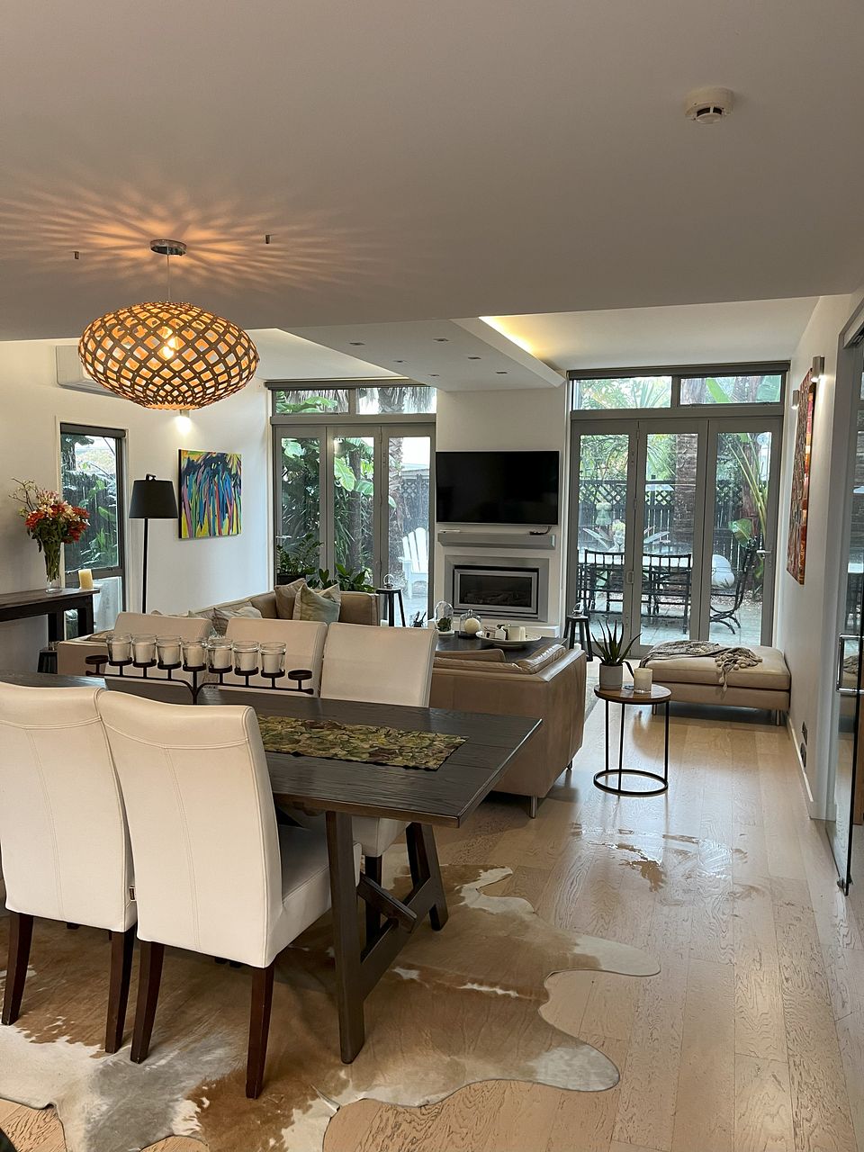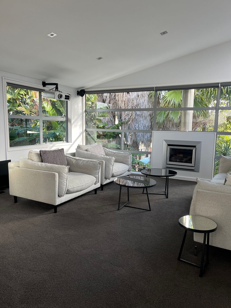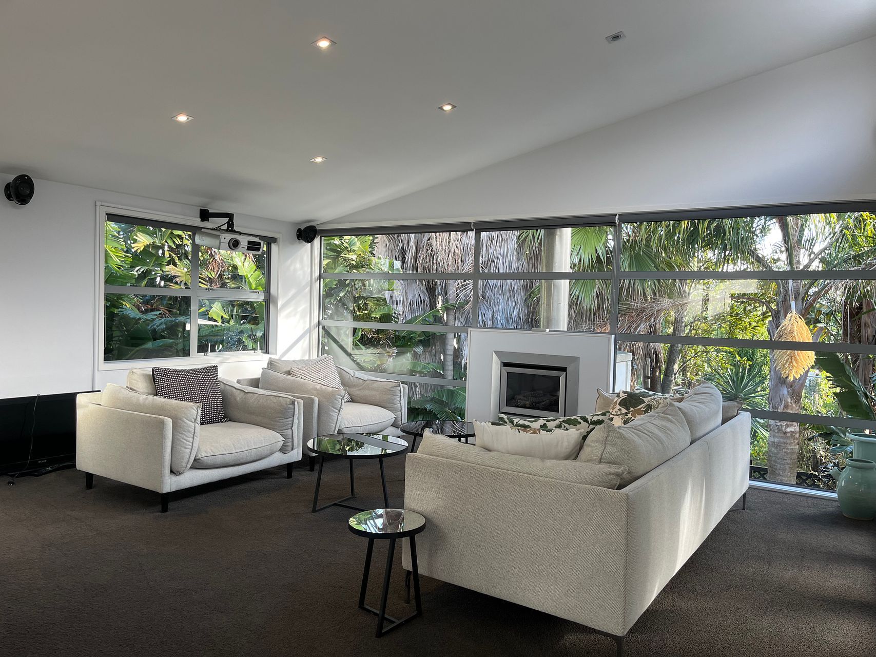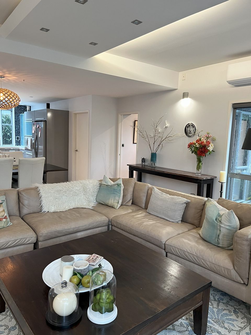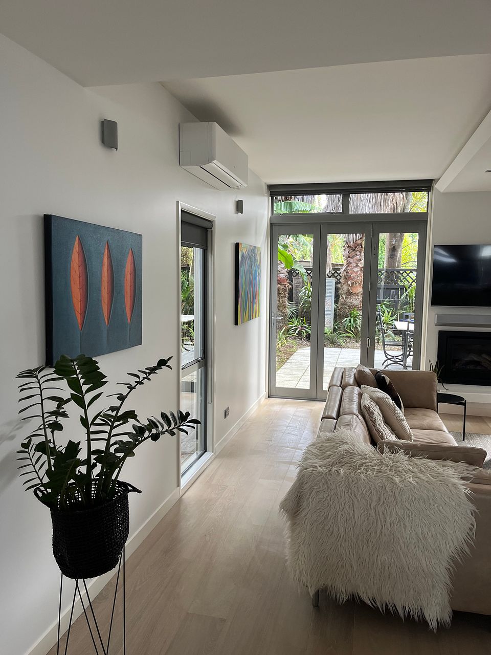 Downstairs is a large open plan living, dining and kitchen area with gas fireplace and heat pump. The kitchen is newly renovated with new double oven, integrated dishwasher, gas hob and walk-in pantry and underfloor heating. Kitchen is fully equipped. The lounge opens via stacking doors to a fenced, gated courtyard with large palm trees for extra privacy.