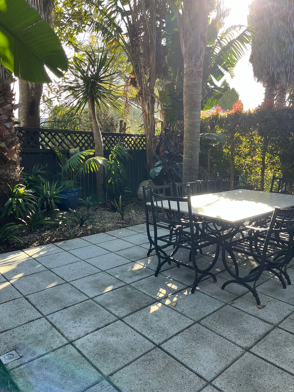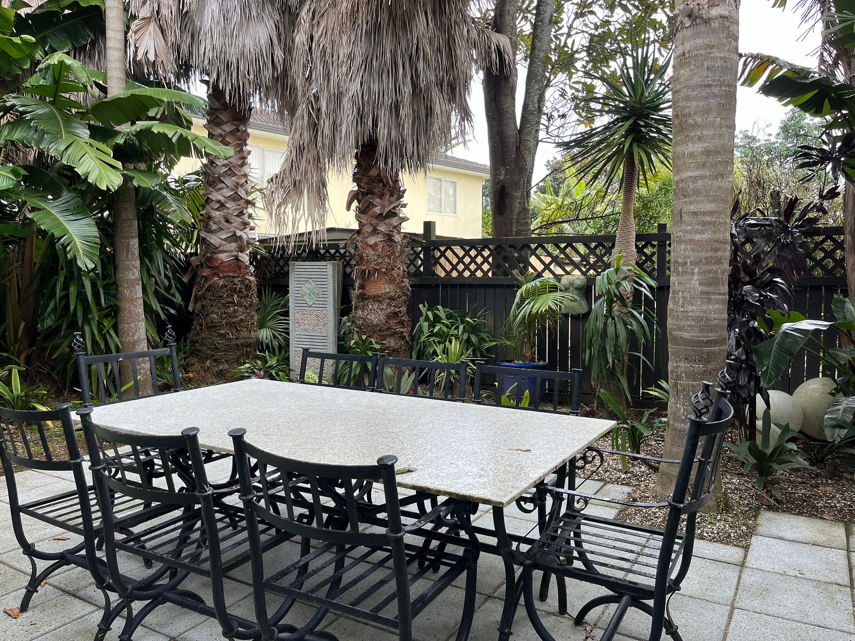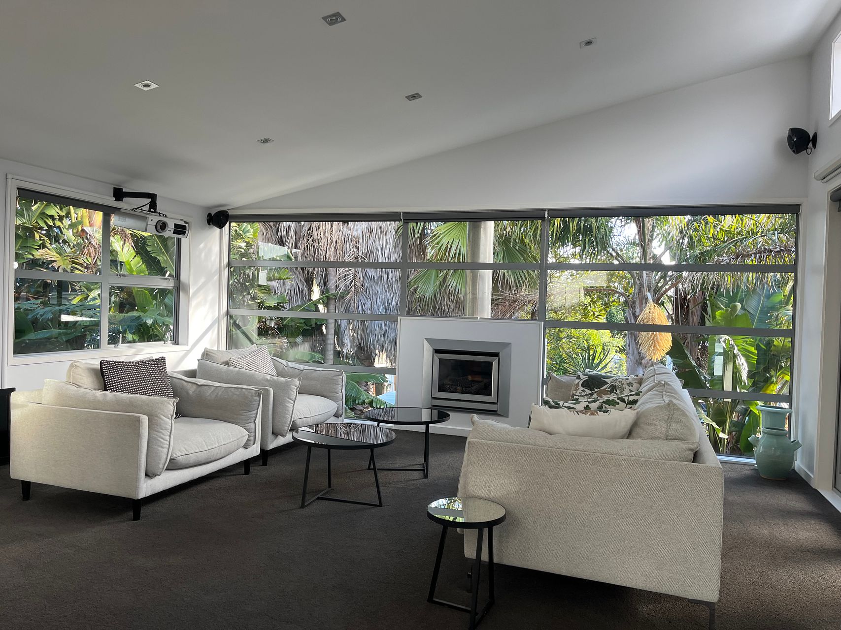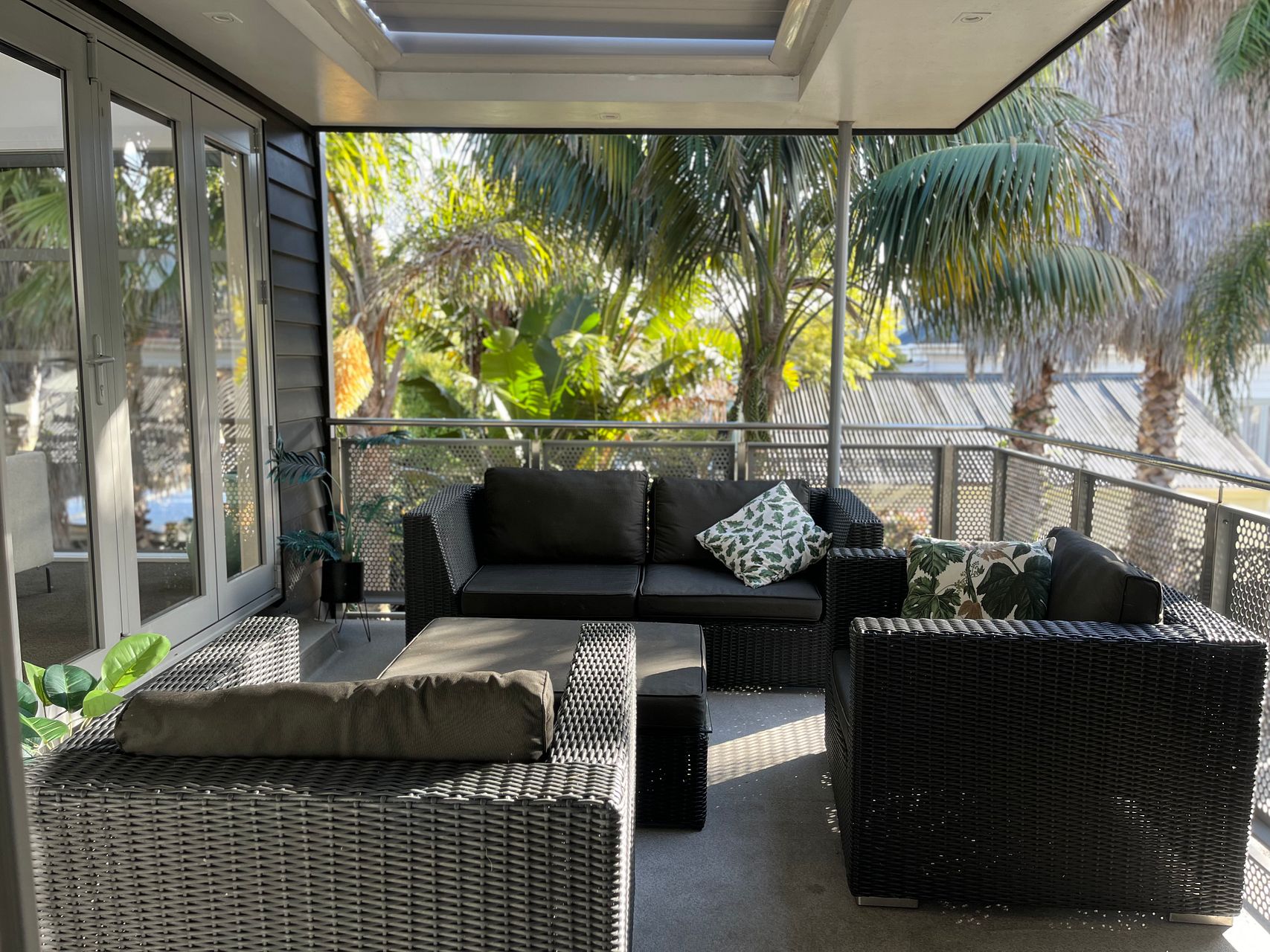 Downstairs is a large open plan living, dining and kitchen area with gas fireplace and heat pump. The kitchen is newly renovated with new double oven, integrated dishwasher, gas hob and walk-in pantry and underfloor heating. Kitchen is fully equipped. The lounge opens via stacking doors to a fenced, gated courtyard with large palm trees for extra privacy.