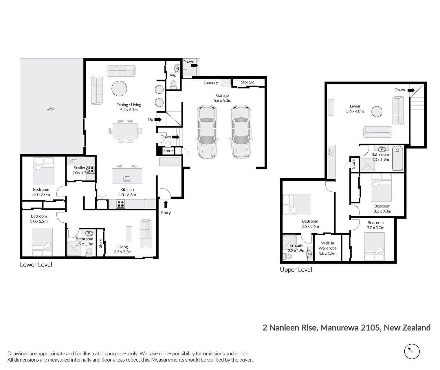 3 large double bedrooms (1x with ensuite) on the upper level and walk in wardrobe