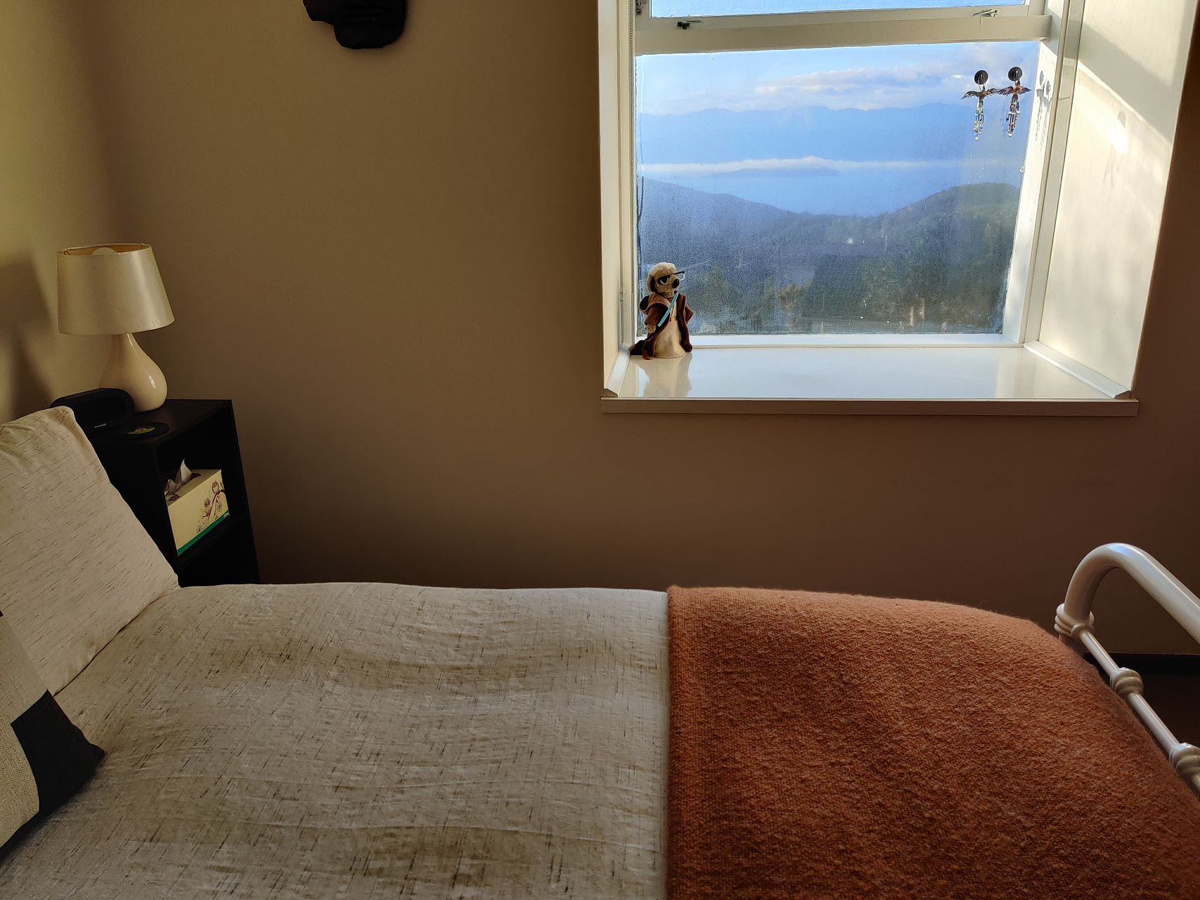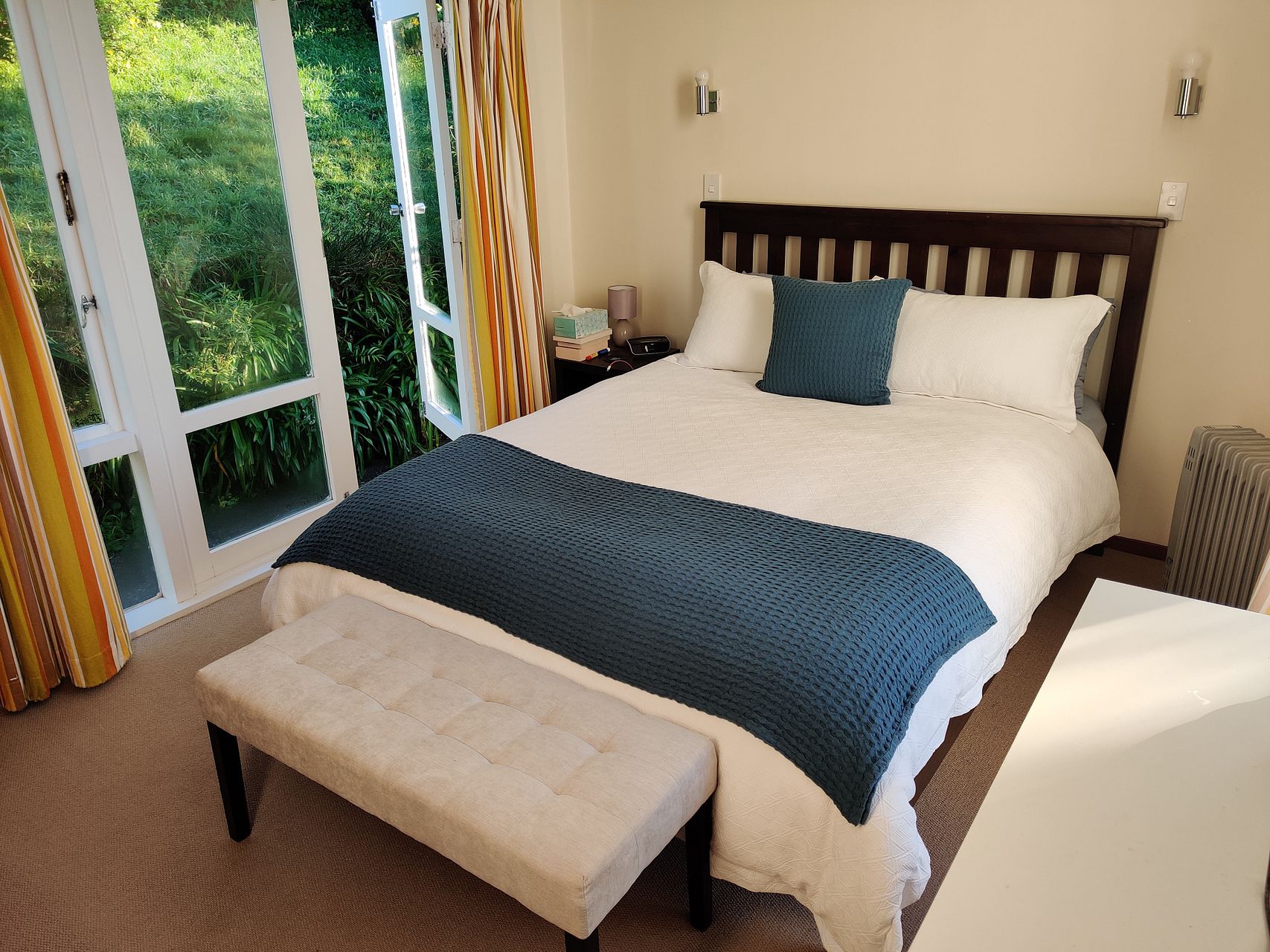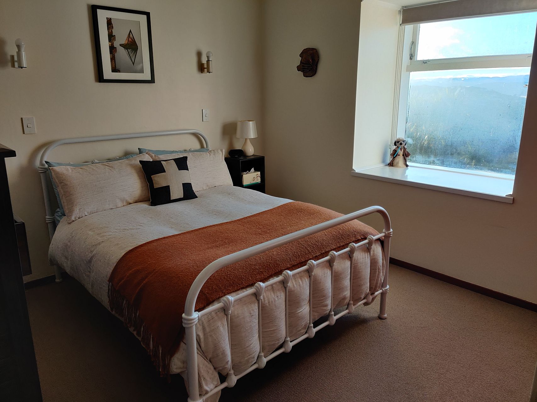 Spacious second bedroom with a bay window looking over the harbour.