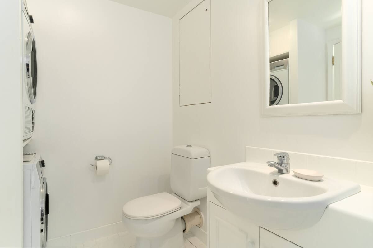 Sunny open plan living area includes a full-sized kitchen with oven, hob, dishwasher and fridge-freezer. Separate mezzanine bedroom with a huge Californian king bed and a wall-mounted TV. En suite bathroom with shower over bath and includes washing machine/dryer.