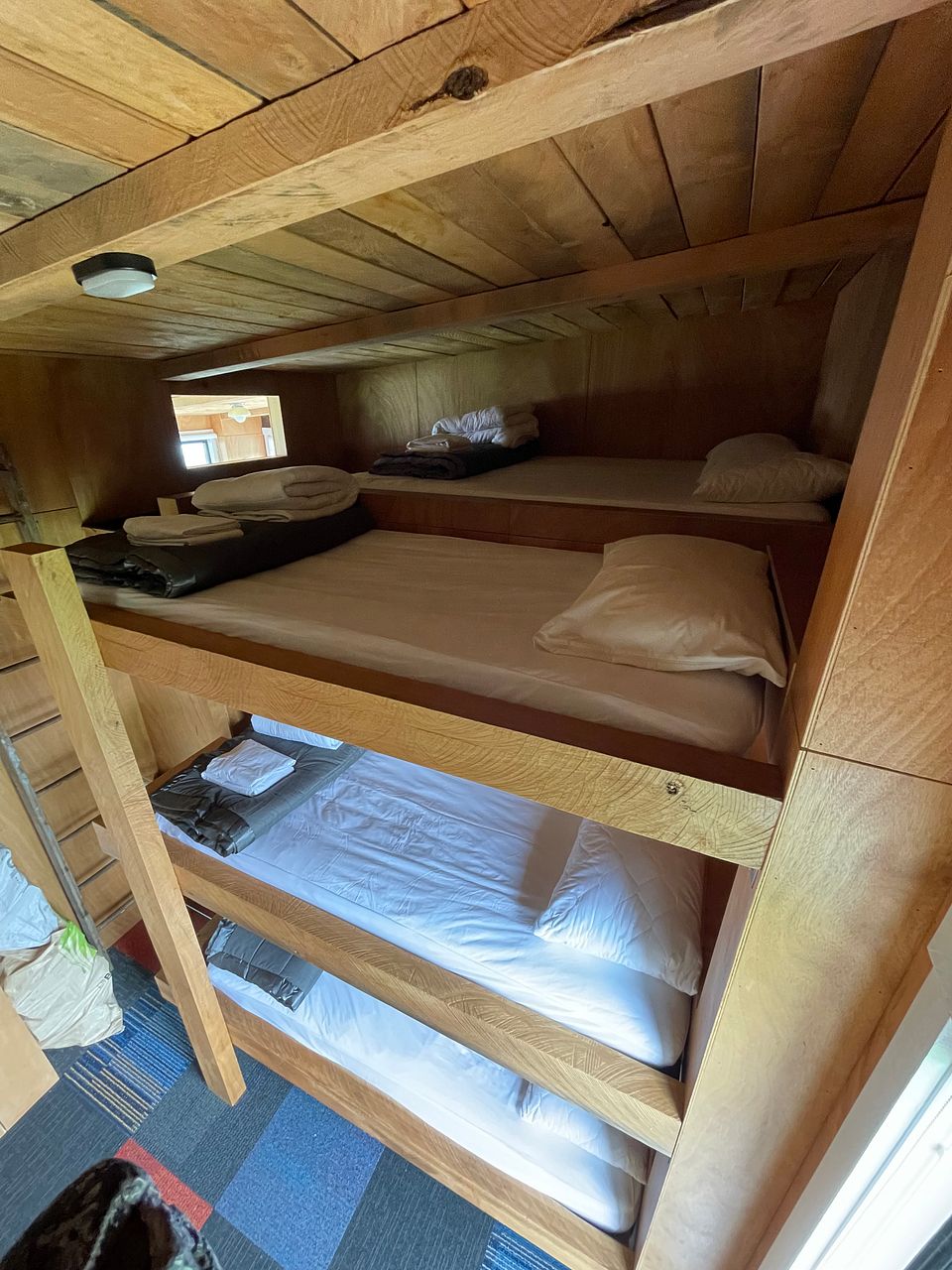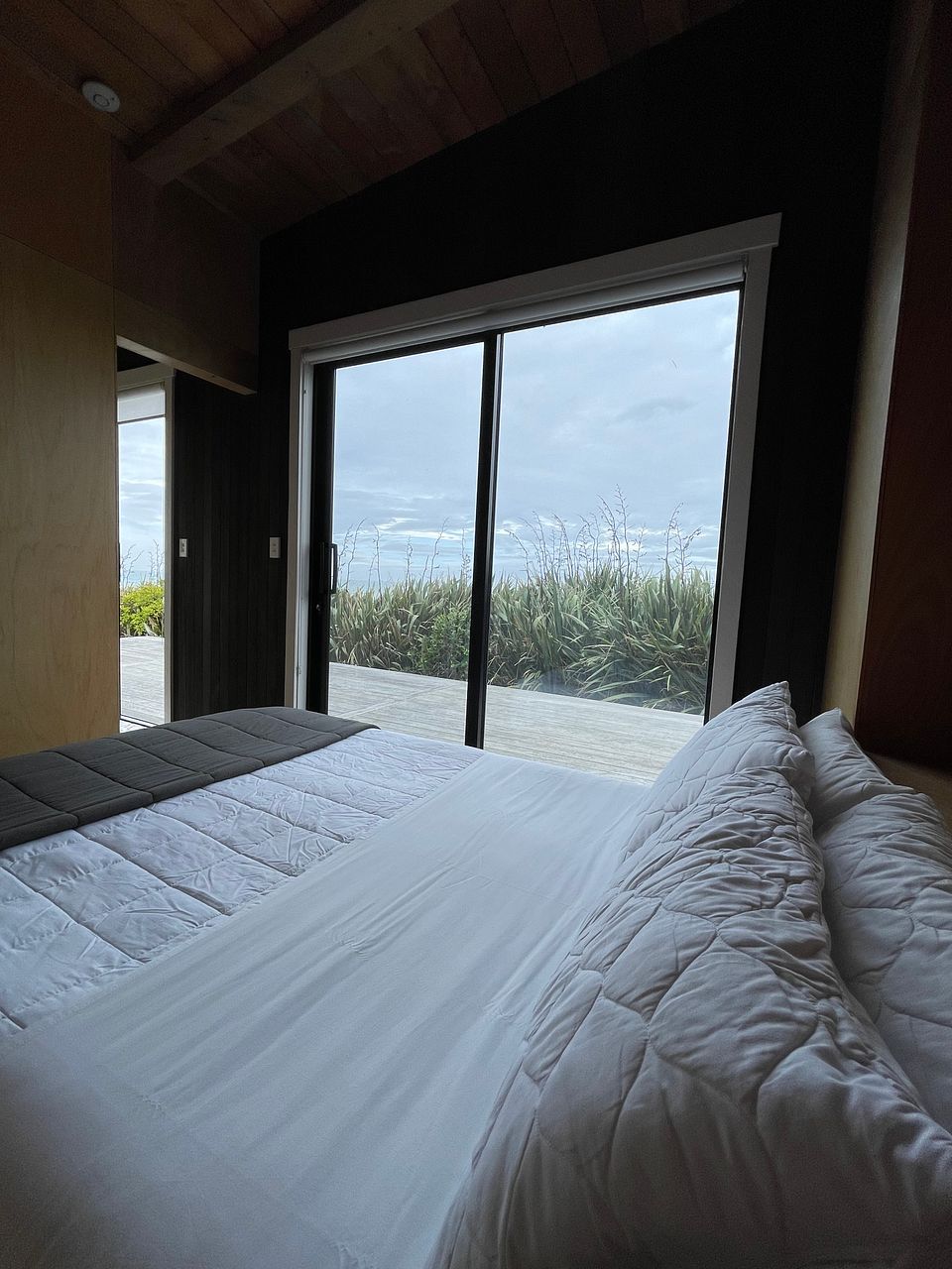 The bach consists of two main bedrooms (one with ensuite) and a third room with built in triple bunks. There are also two mezzanine floors accessed by ladders or the climbing wall.