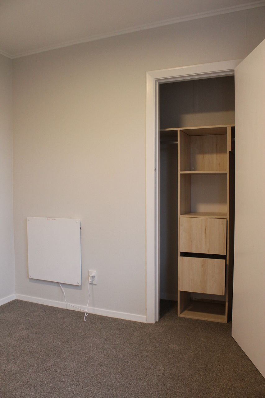 * heatpump in the lounge & panel heater in the bedrooms