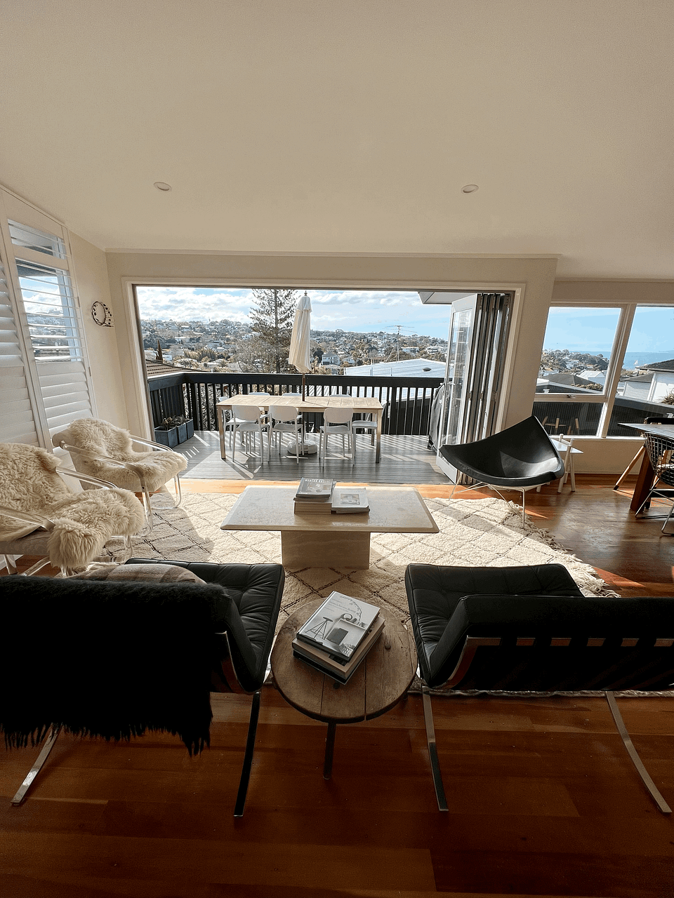 The home is light and spacious, with open plan living and dining area that opens out onto a deck area.
