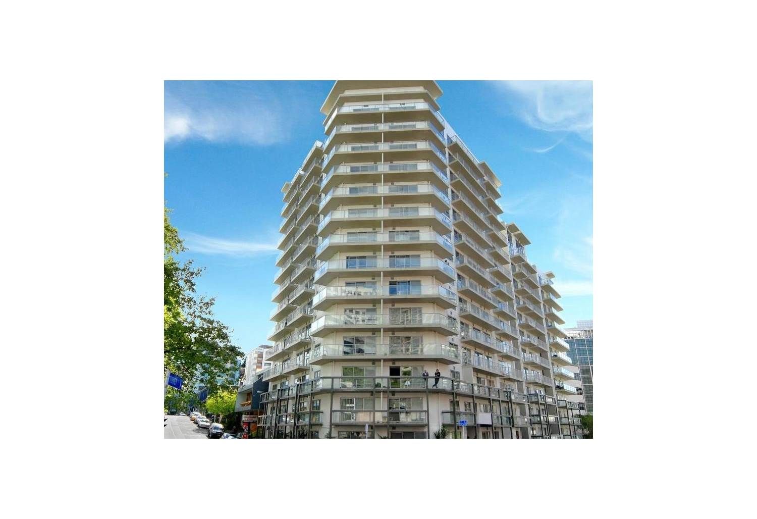 12B/2 White Street in the very heart of Auckland CBD - high up on the 12th floor, with a big balcony.