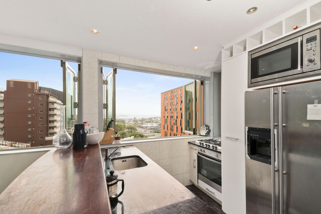 This lovely 94 square meter 3 bedroom penthouse apartment is located on the top two floors of the Whitaker Building at 2 Whitaker Place, Grafton, Auckland Central 1010 and is available for rent from July 10, 2023. The rental includes 2 secure covered parking spaces and the bond is set at $1,640. It has great views of the ocean and Rangitoto.