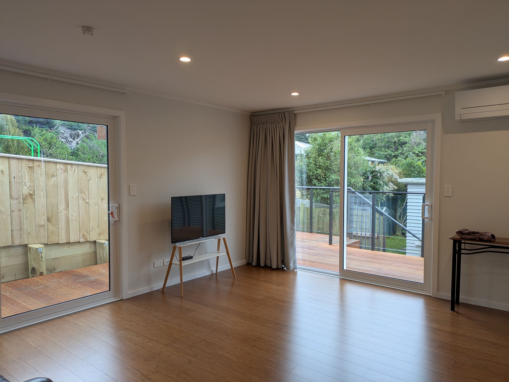 - Step into a spacious living area with a Mitsubishi heat pump (Wi-Fi controlled).