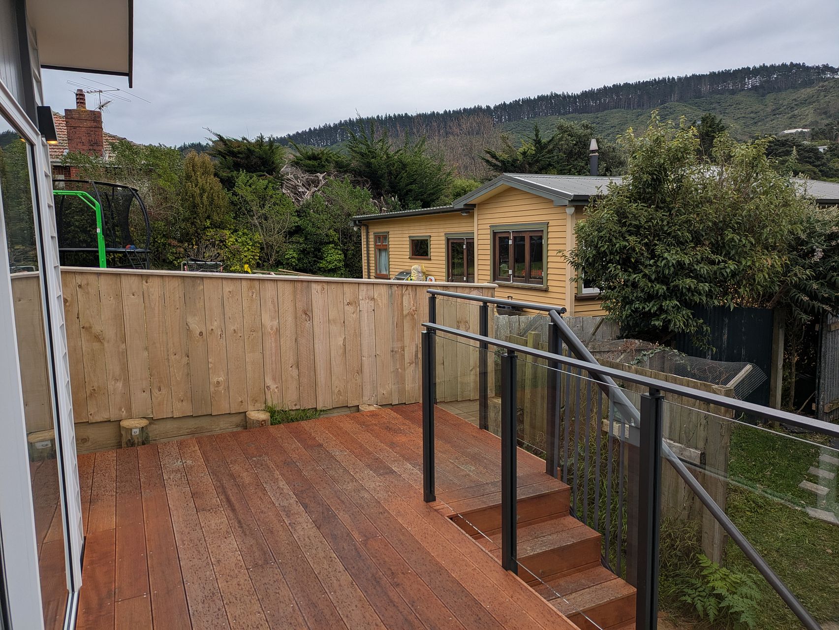 - Arrive at the deck, built from hardwood timber.