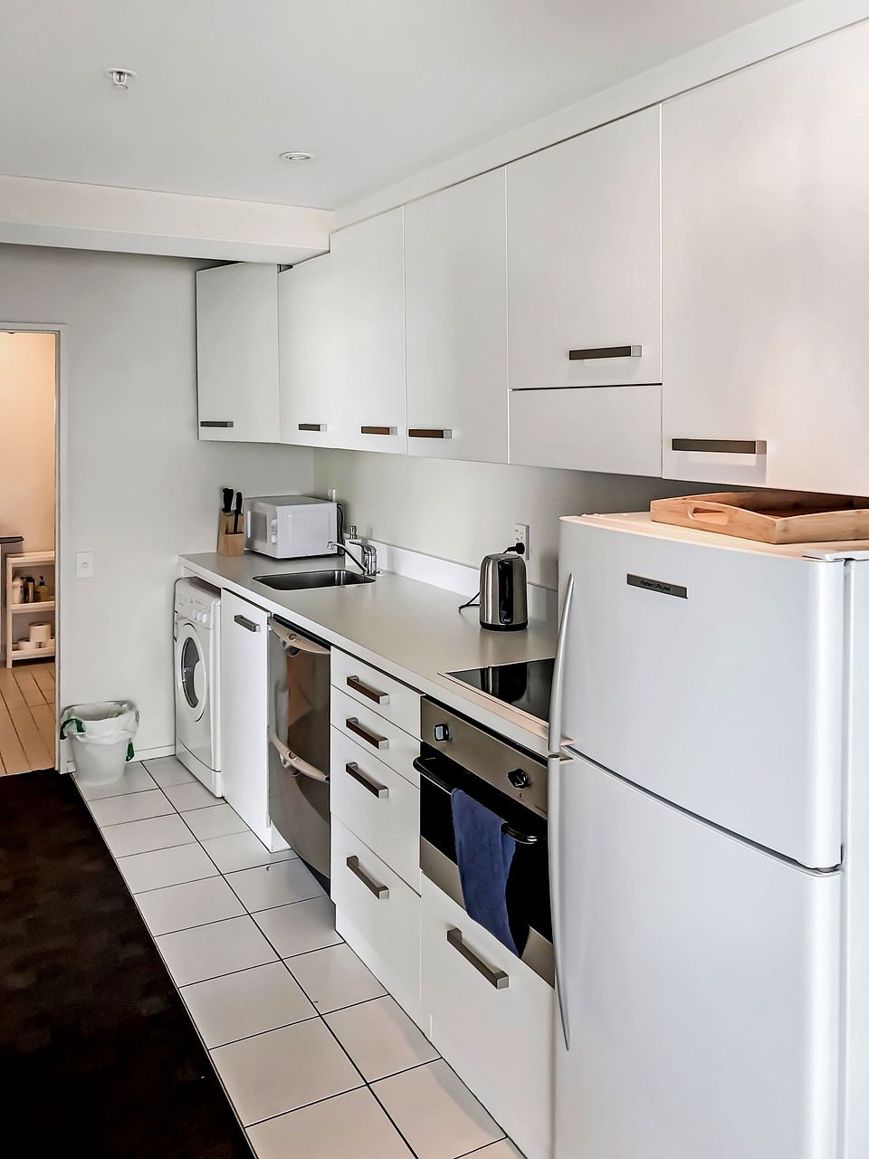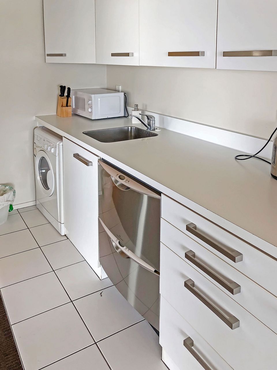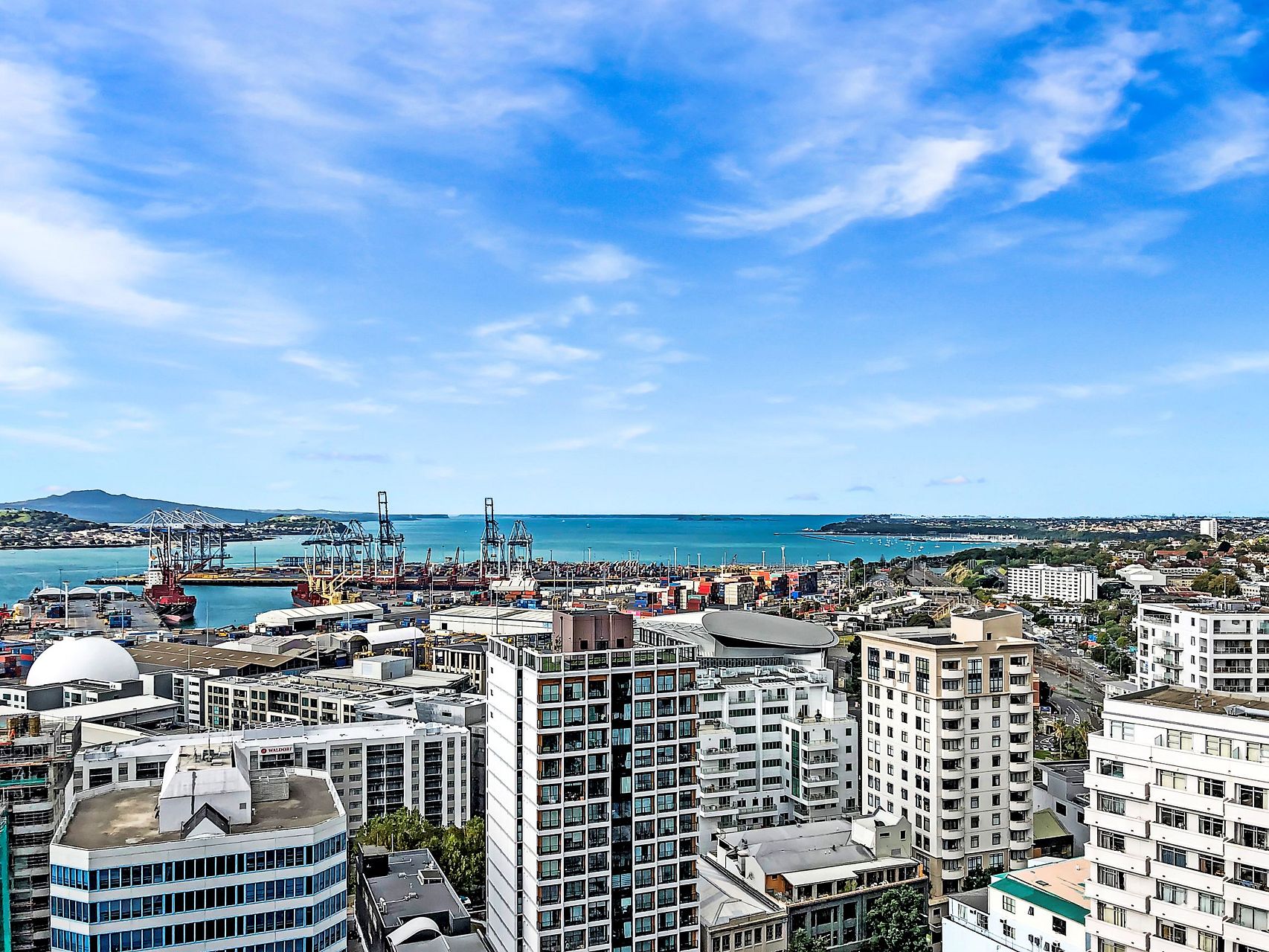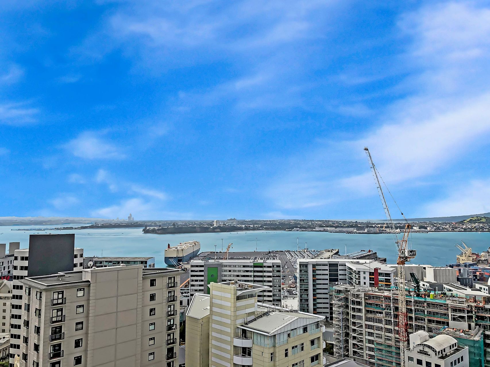 Both bedrooms are doubles, and have queen beds and balconies, along with good wardrobes. The bathroom is clean, modern and functional. The open plan living space has a sofa plus another sofa bed, a dining table with 6 chairs, and balconies along both sides with stunning views over the harbour and beyond