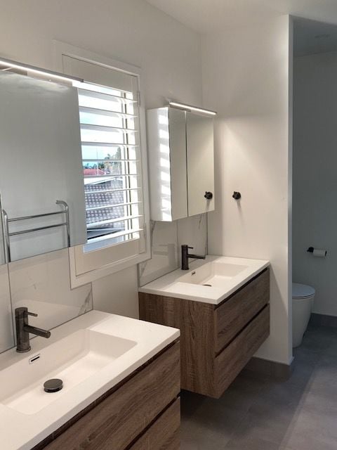 Recently renovated large family home with open plan kitchen, dining and lounge room upstairs, with master bedroom, walk-in-wardrobe and large ensuite on the same level. Downstairs there are 3 bedrooms (two of these share an adjoining retractable door, providing options for a work from home office suite or second lounge) and a large family bathroom (including bath). There is a third toilet in the powder room upstairs to serve the living area spaces.