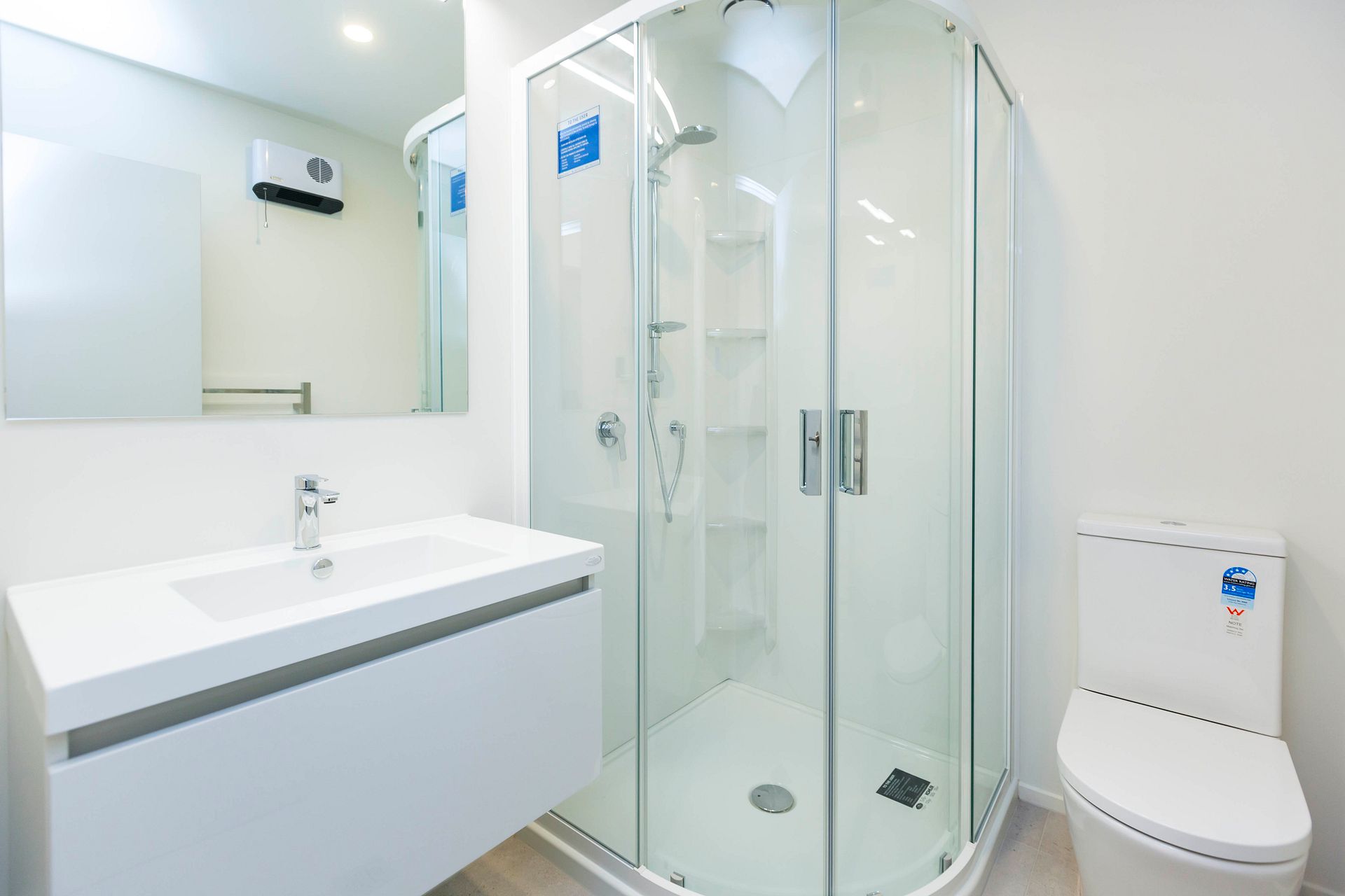 • Underfloor heating and extra heater installed in bathrooms.