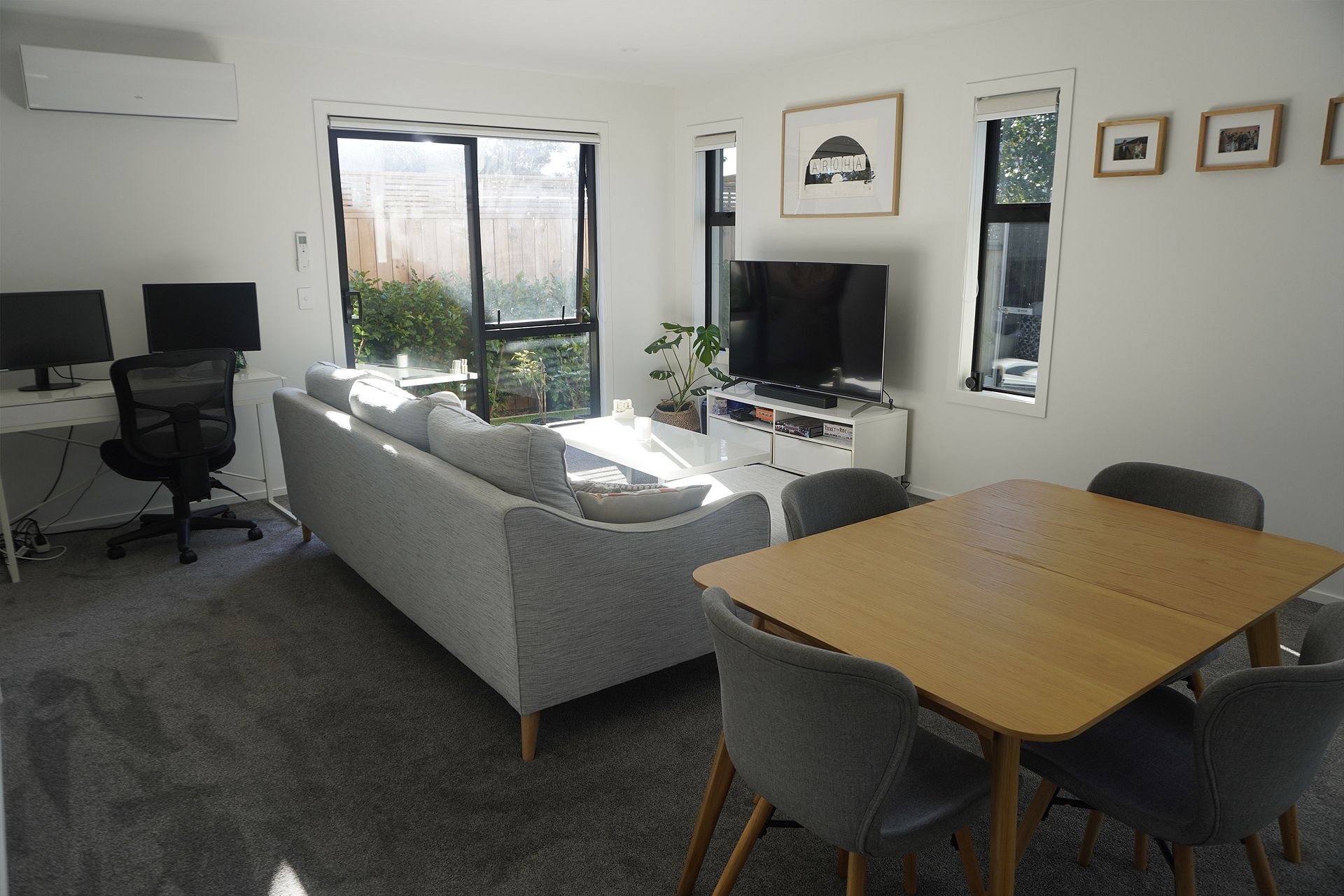 It features a spacious open plan living, dining and kitchen area, with extra storage under the stairs. A heat pump in the lounge and upstairs to keep you cool in the summer and warm in the winter. Perfect for professionals or a couple.