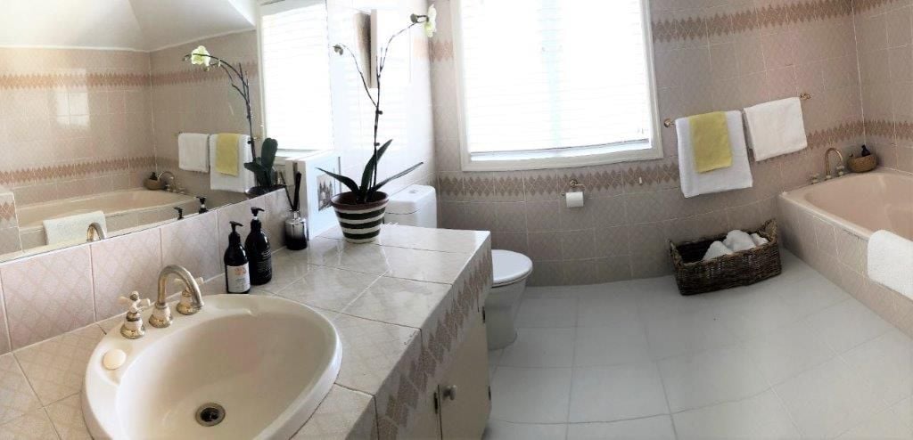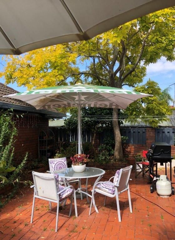 Spacious sunny, tiled bathroom with large bath, separate shower and toilet.Comfortable living and dining rooms open onto courtyard. Large well-appointed kitchen looks out over sunny, private garden areas with very safe neighborhoods.