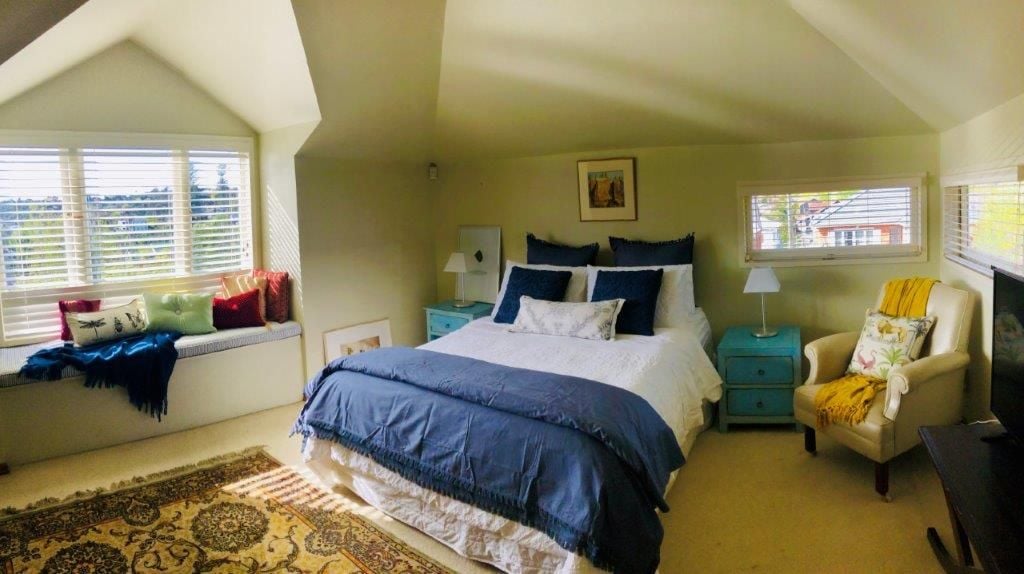 Large, sunny & comfortable furnished bedsit with own bathroom (ensuite), large screen TV and wifi. Quiet street, close to parks, waterfront, cafes and shops. Handy to public transport, close to Newmarket and Parnell, 15 min drive to Auckland CBD. Large sunny double bedroom with Queen size bed, window seat and office area.