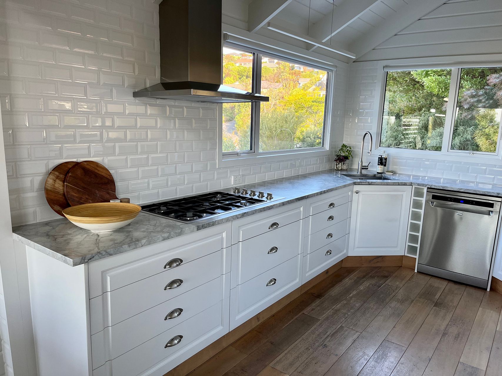 You will be toasty in winter with fully double glazed windows, two heap pumps, a log burner and bathroom under tile heating. Beautiful timeless shaker style kitchen, granite bench tops, gas hob with two pyroletic ovens and fisher and paykel French door fridge/freezer. Whole house water filter.