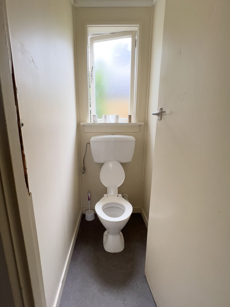 Large living room, single bathroom, two separate toilets.