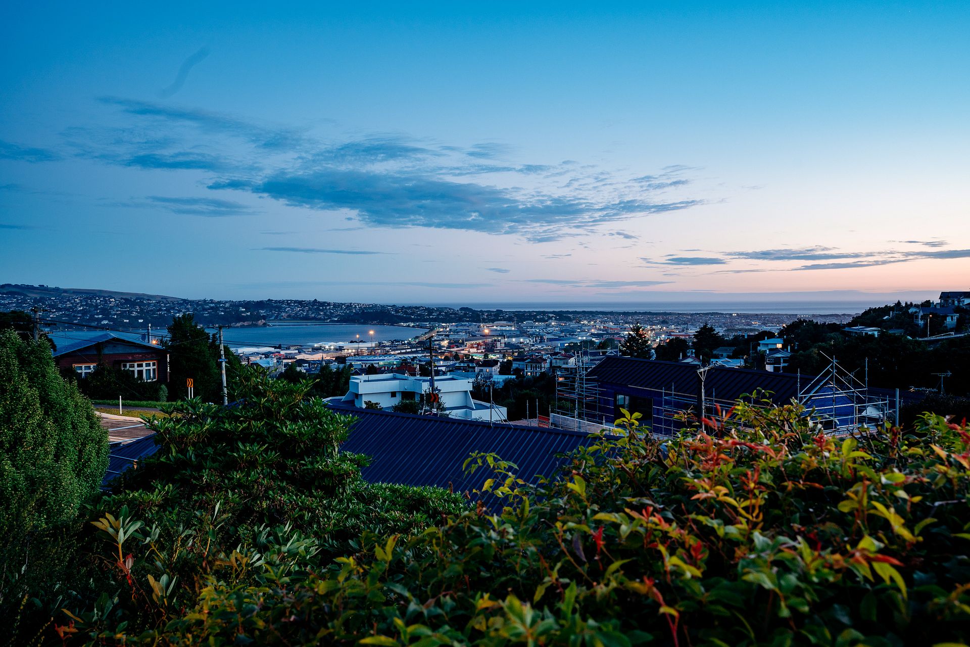Overlooks the private and secure garden plus stunning harbour and ocean views extending across St Claire and Dunedin Peninsula.