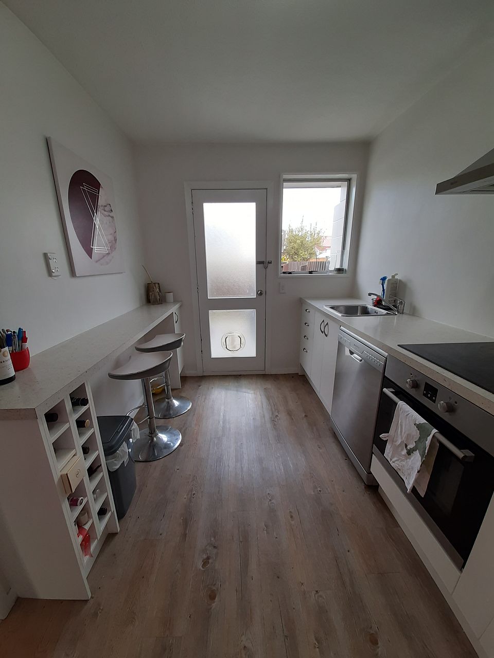 -Modern and light kitchen with new under bench oven, dishwasher, ceramic hob and rangehood.