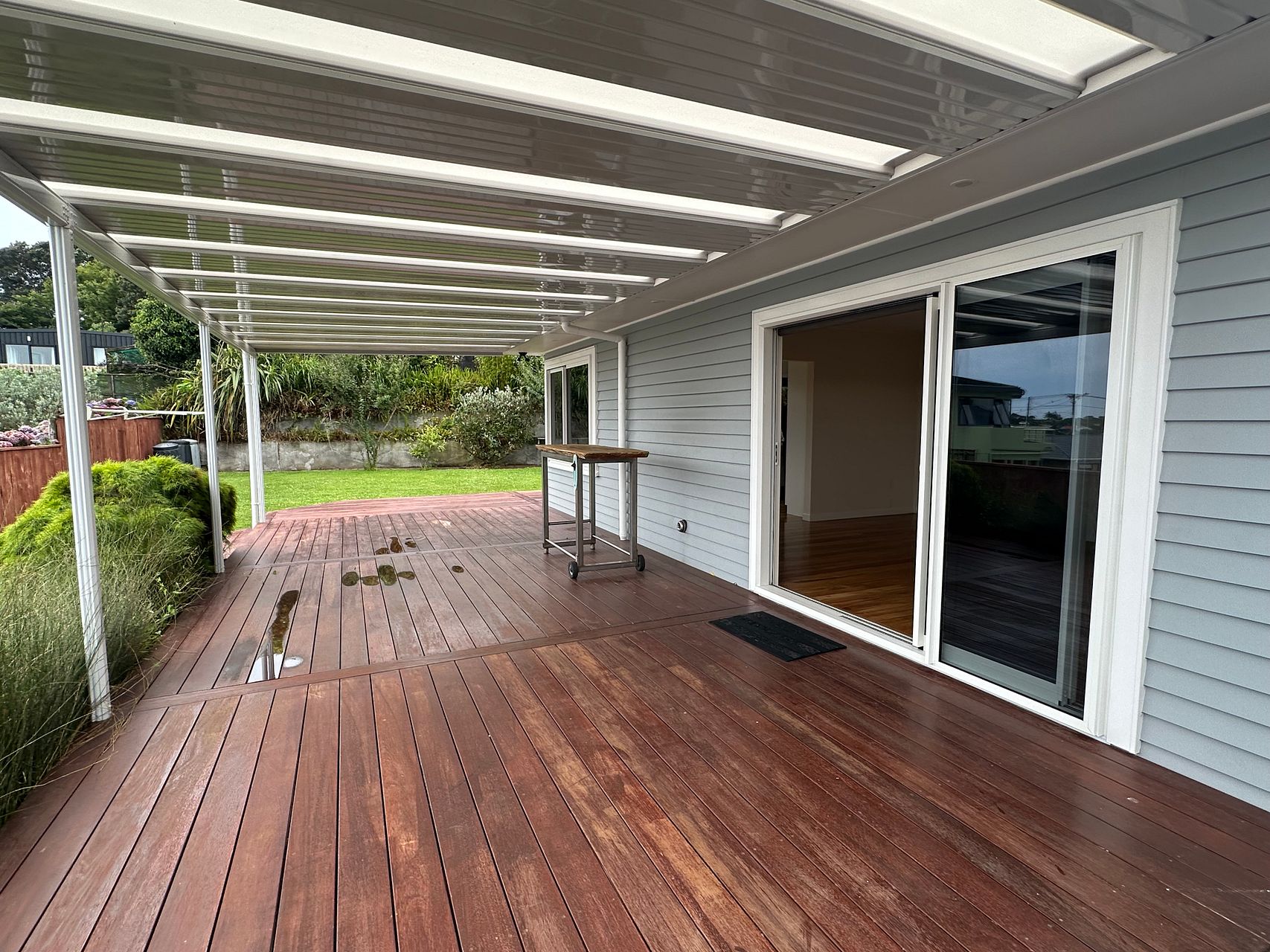 The open‑plan living area flows onto a large covered deck, creating an easy indoor–outdoor space for relaxing or entertaining. The home is updated throughout, including a modern kitchen, bathroom, and a separate laundry.