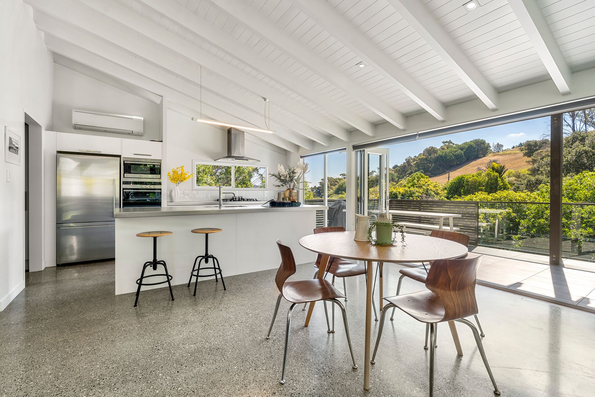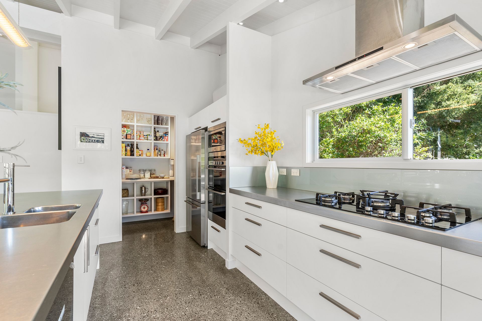 An entertainers kitchen with a sensor lit, walk-in pantry and high end appliances. Open plan dining and living flows seamlessly out to an expansive deck - ideal dinner with friends, as the sun sets lower in the evenings.