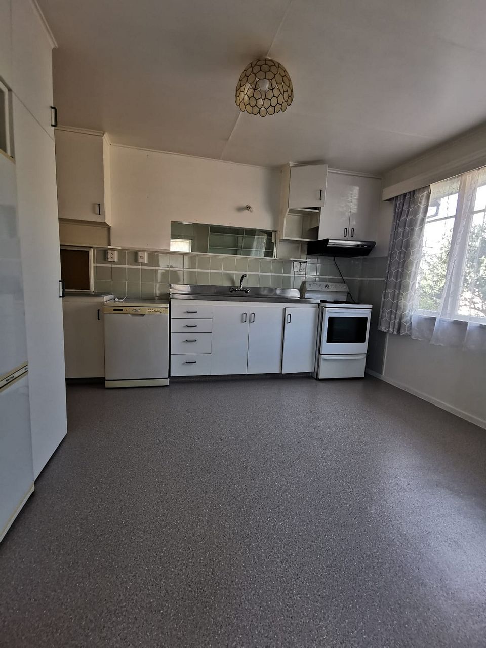 Fridge/ freezer, Electric freestanding stove, Range hood, Dishwasher, gas hot water, in built gas heater, curtains and drapes.