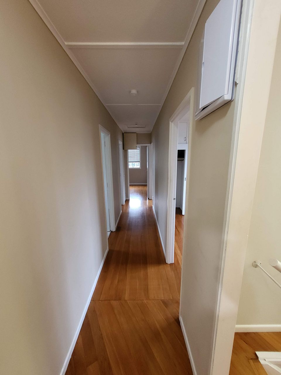 Polished floors in lounge, hallway and bedrooms.