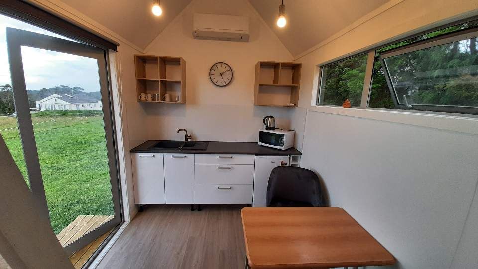 The loo is an eco friendly composting toilet. A heat pump keeps the space cool in summer and warm in winter. Electricity, water, gas and internet are all included in rent. The cabin is designed for 2 people but we prefer 1 person for long term. We will maintain the lawn.