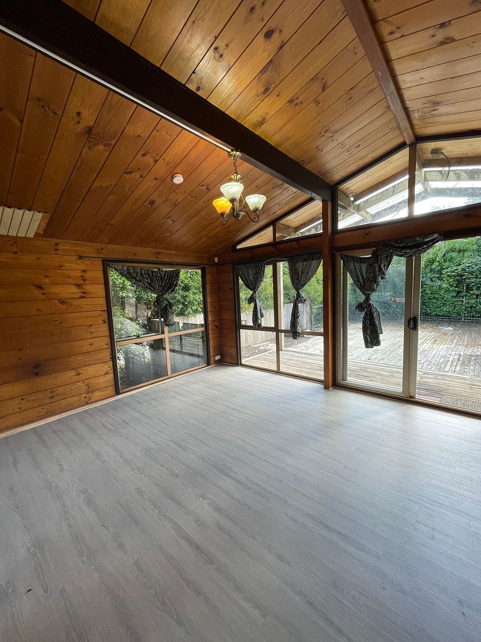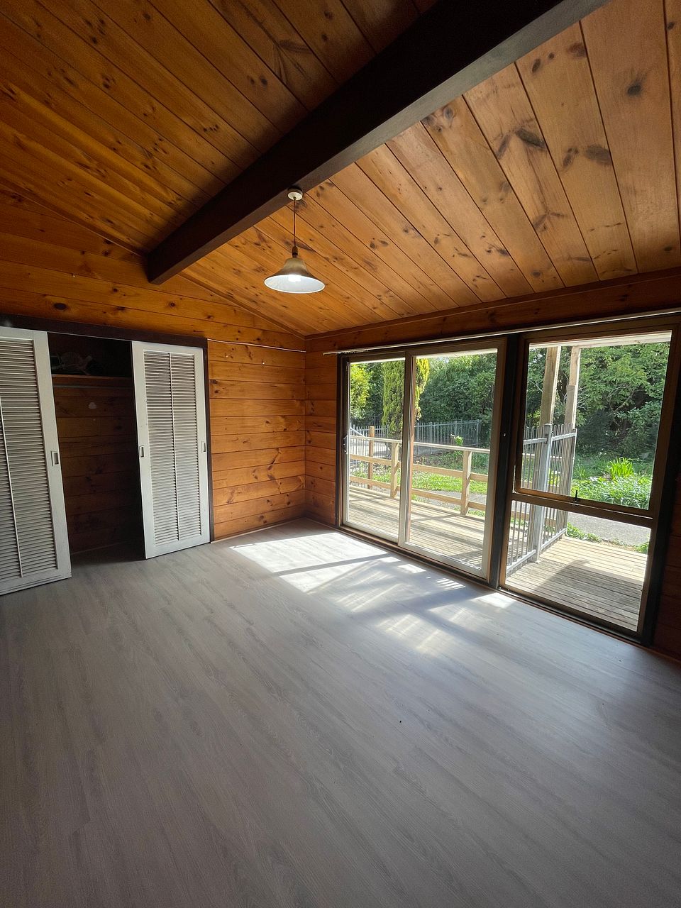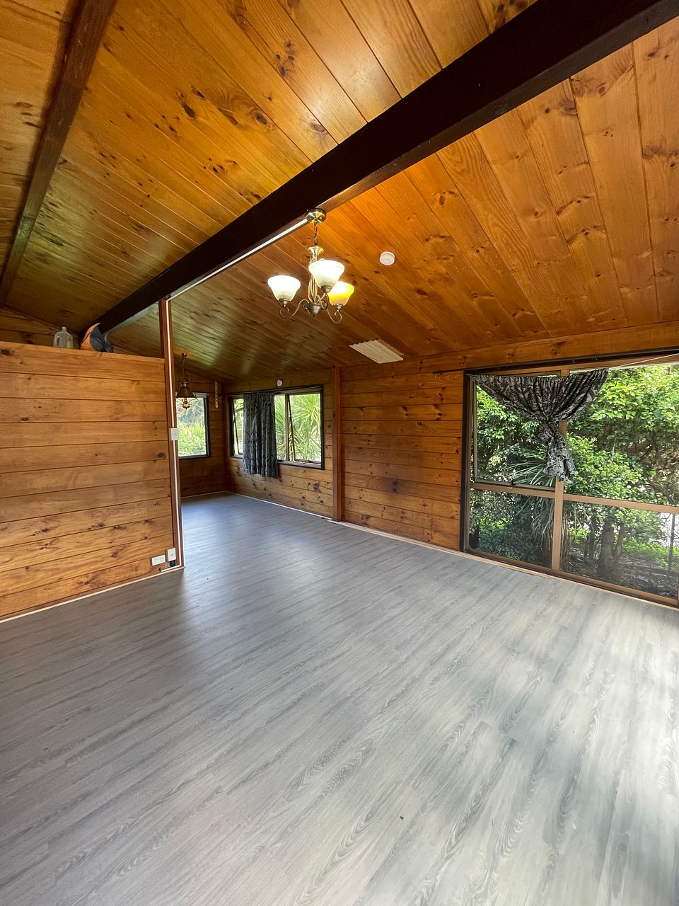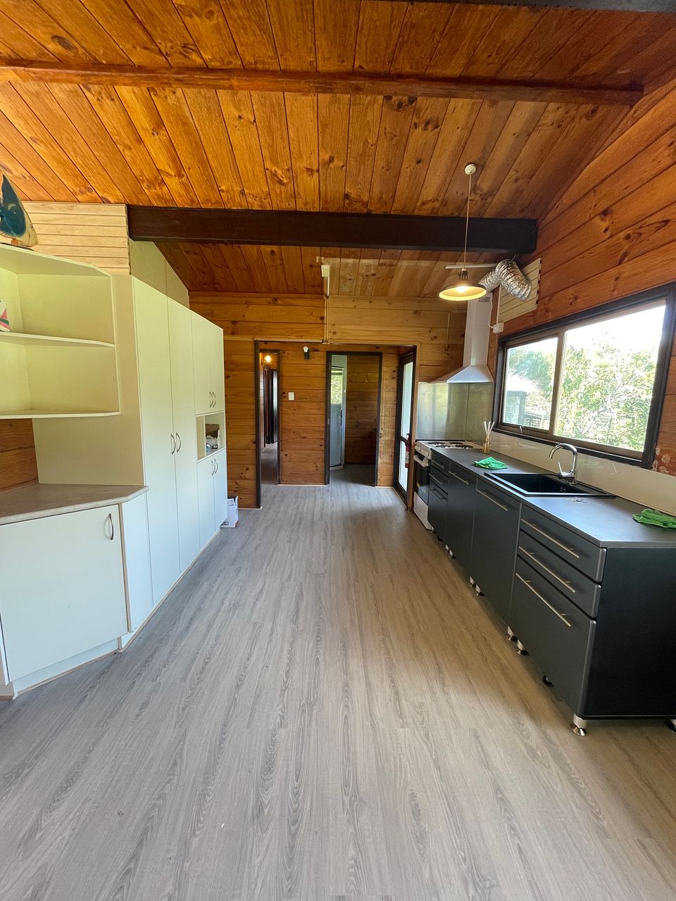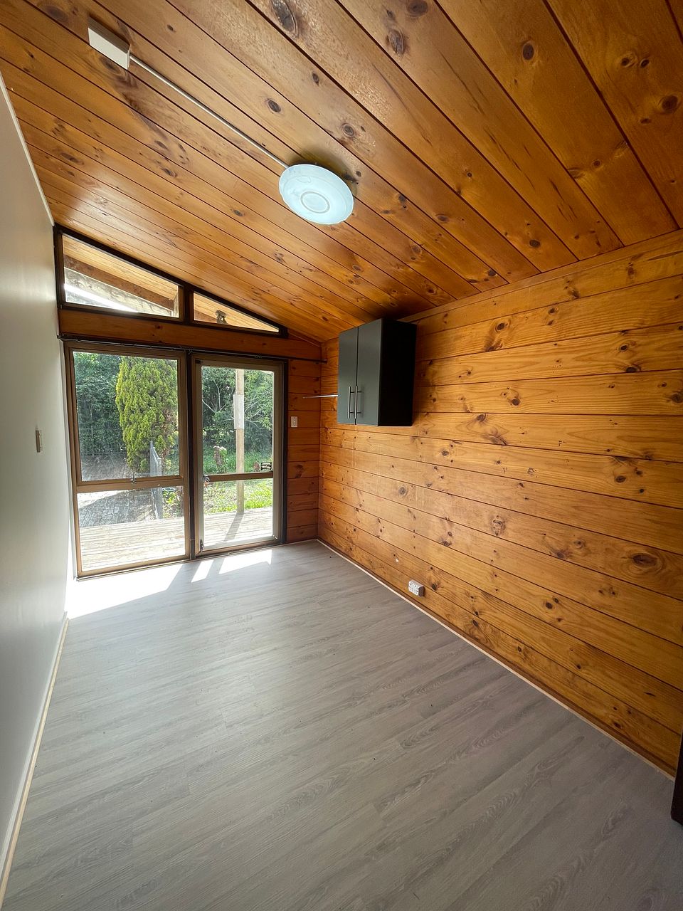 - Spacious Open Plan Living: The living area features wooden walls and ceilings, creating a warm and inviting atmosphere. It seamlessly blends into the kitchen area, perfect for hosting gatherings or relaxing with loved ones.