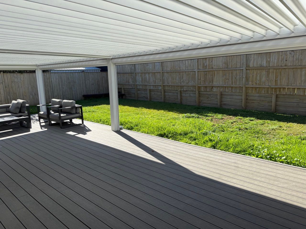 Large deck with a fully automated louvre canopy, electric blinds, and a heater for year-round comfort.