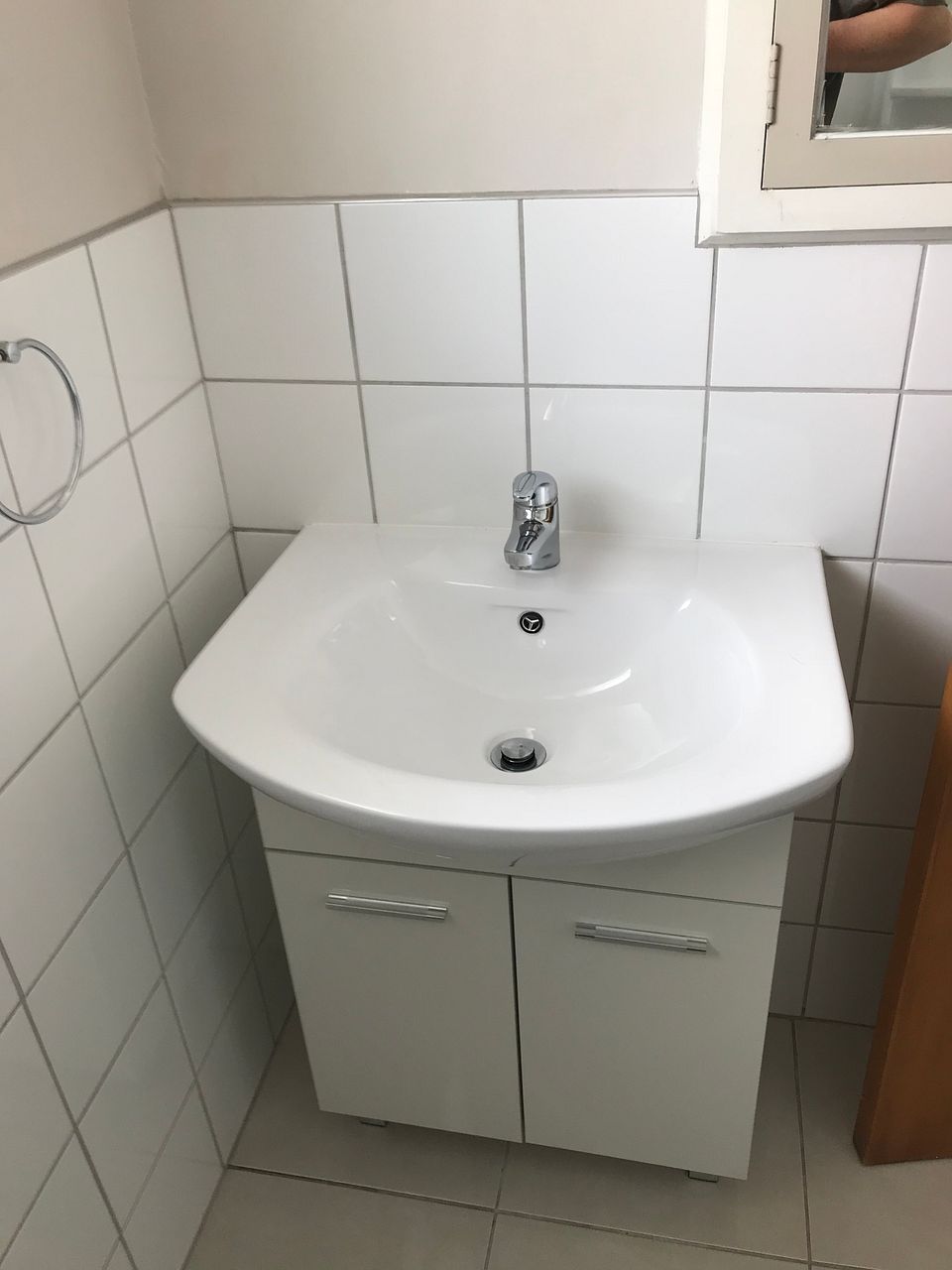 Separate tiled laundry.