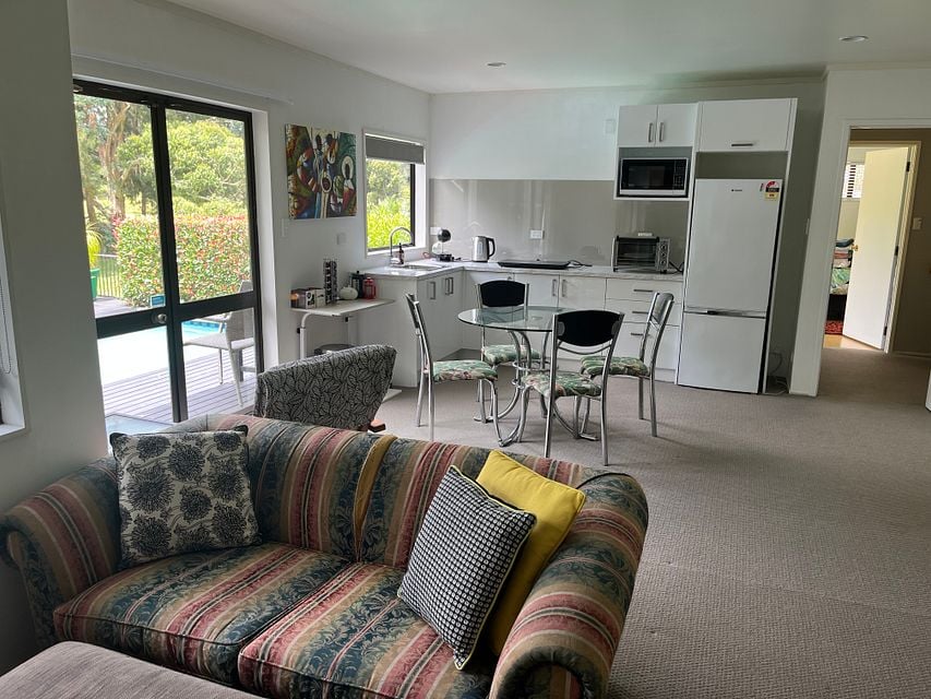 Quiet with private entrance. Step out the doors to a deck with swimming pool overlooking Remuera Golf Course.