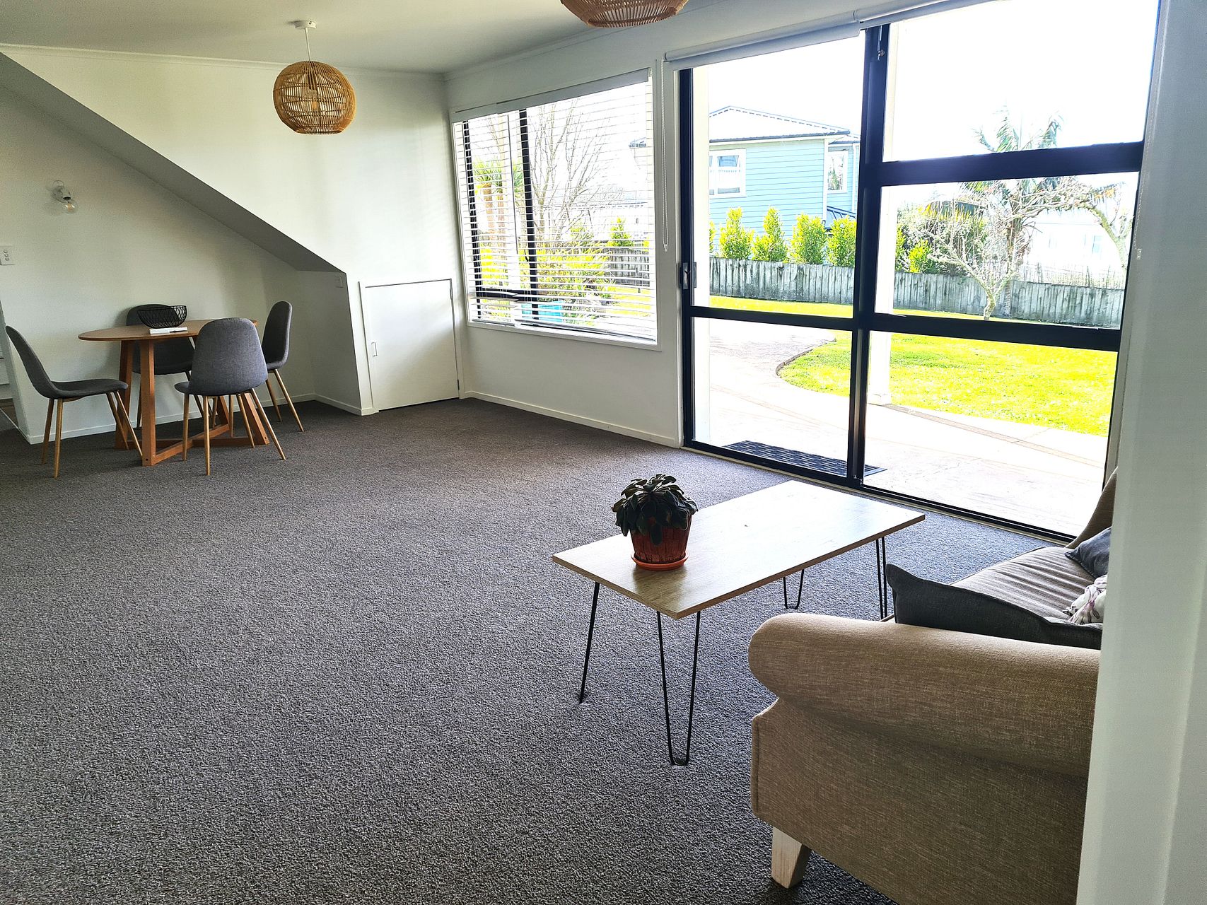 A large open plan living and Dining with air-conditioning