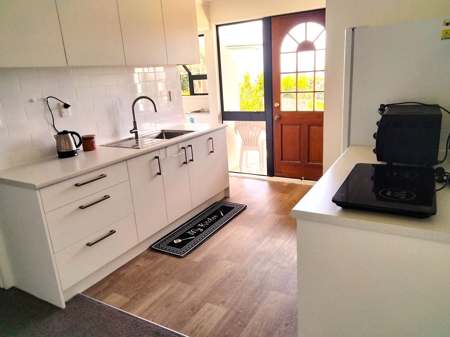 The separate kitchenette, laundry, toilet and shower