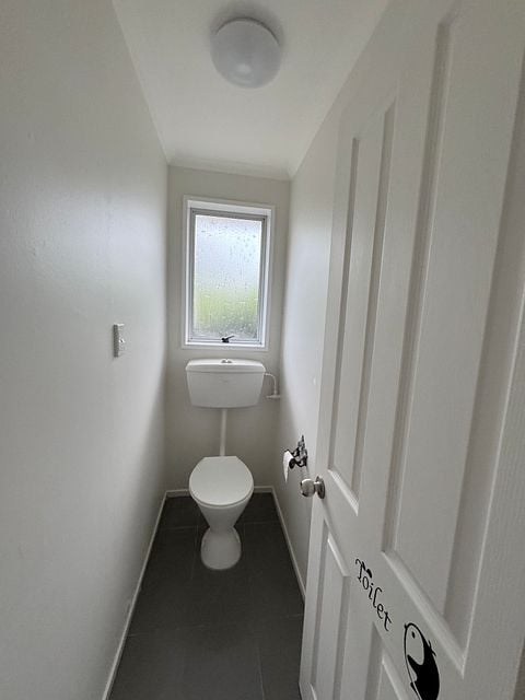 One of the bathrooms has a shower and toilet, and the other has shower and bath. There is a second separate toilet.