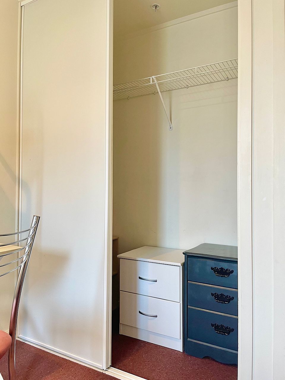 This apartment is high up on the Eastern side of the building which means no road noise, less heat in the summer and lots of natural light even on cloudy days. Roller blinds are fitted on both windows for weekend sleep-ins.