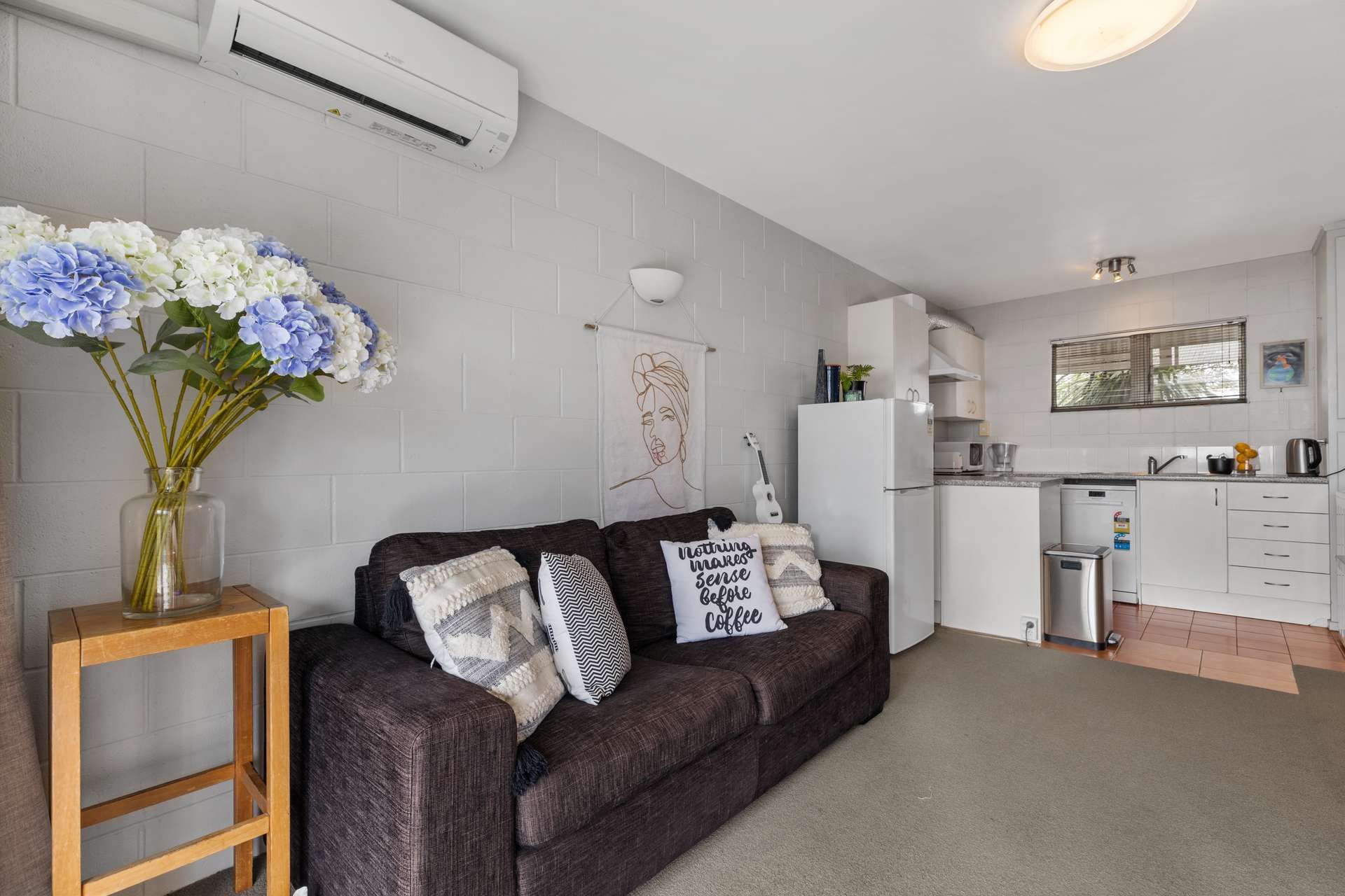 This 1-bedroom unit at 10/32 Blockhouse Bay Road offers a perfect blend of comfort and convenience. As you step inside, the open-plan living area greets you with its warm and inviting atmosphere, equipped with a modern heat pump that ensures your comfort year-round. The functional bathroom complements the living spaces, and the unit is also equipped with a fridge freezer and dishwasher (other furnishings in photos not included)