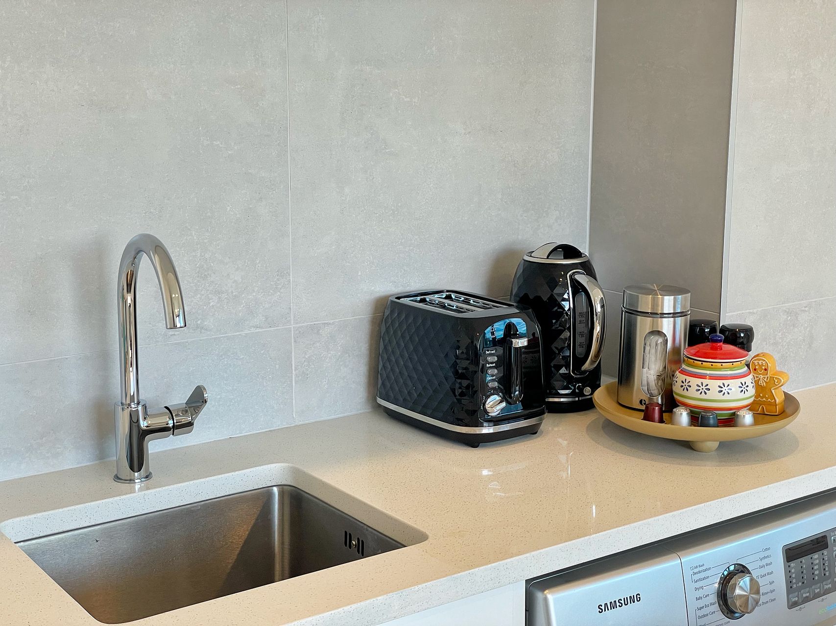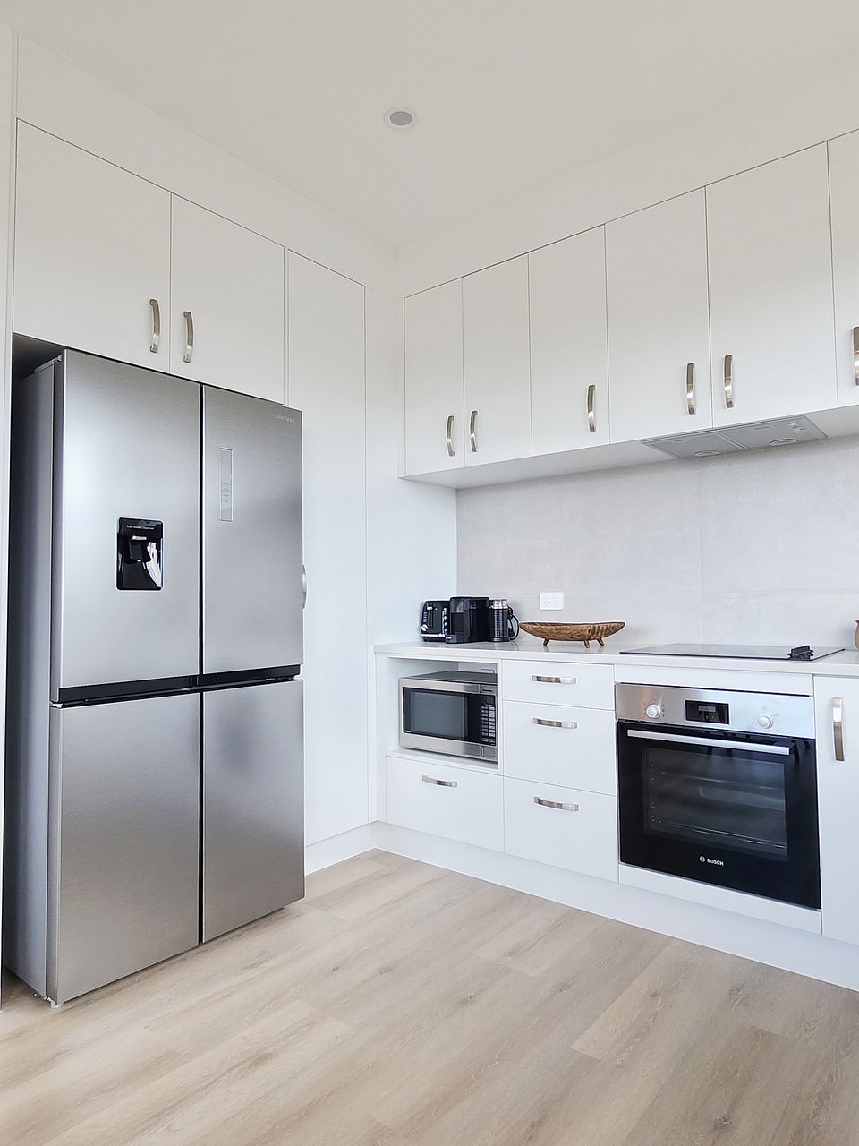 2. Fully Equipped Kitchen – Two-door fridge, oven, rangehood, cooktop, dishwasher, and waste disposer.