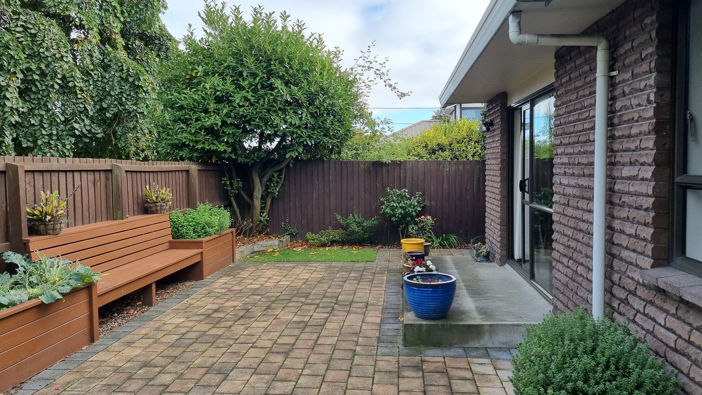- Fenced, low maintenance, quiet and private courtyard, lawn and garden area