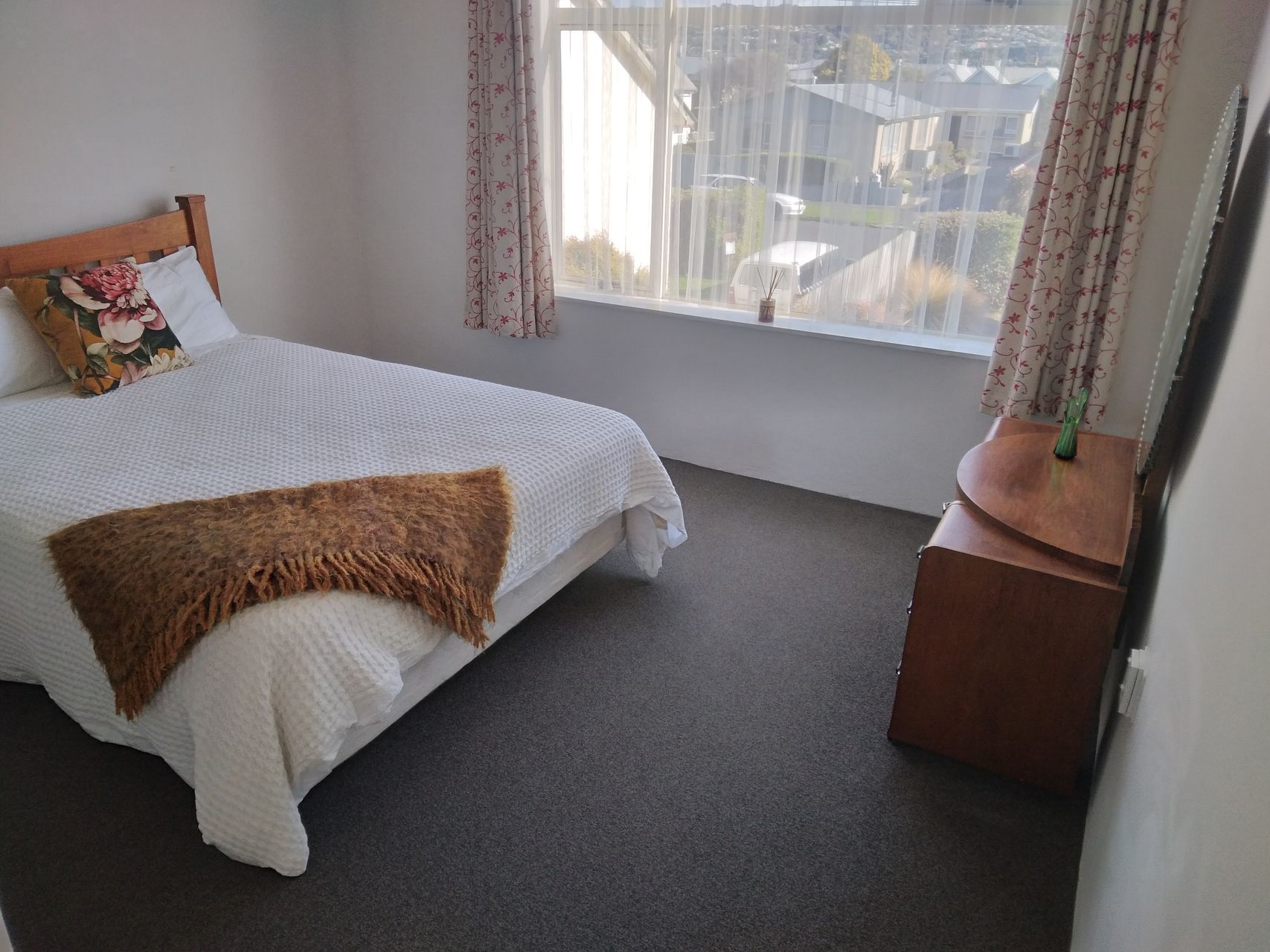 Recently renovated one bedroom sunny and spacious apartment. This 80 sq metre upstairs unit has a new bathroom, carpet, and heatpump. Access is via an external staircase.