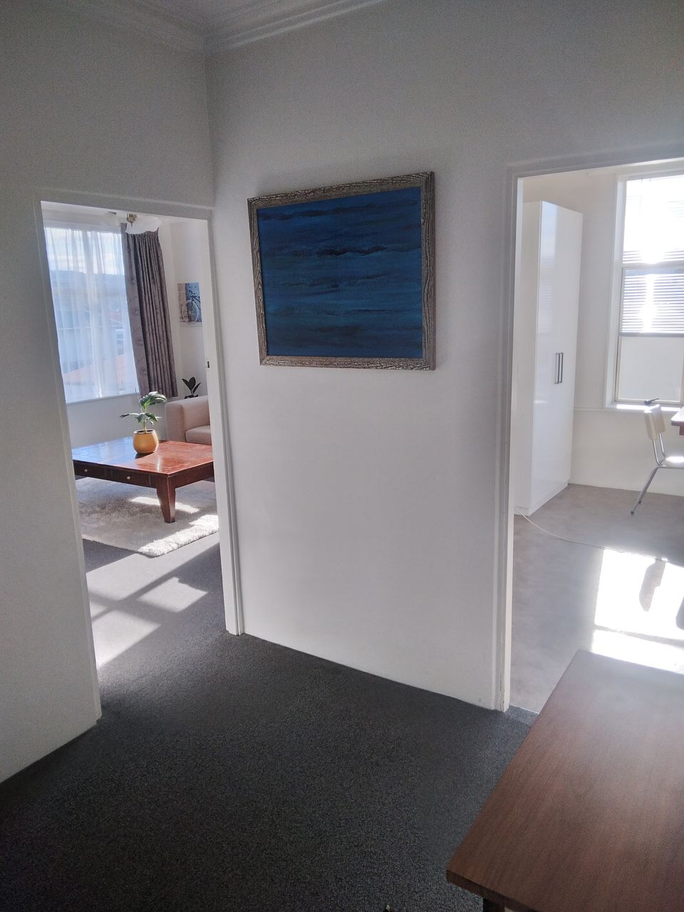 Large bedroom with built in wardrobe. Ample kitchen storage in the sunny kitchen/dining with great views over the city. Separate laundry, semi furnished with queen bed, sofas, bookcase, kitchen table and chairs, fridge freezer, washing machine, microwave etc.