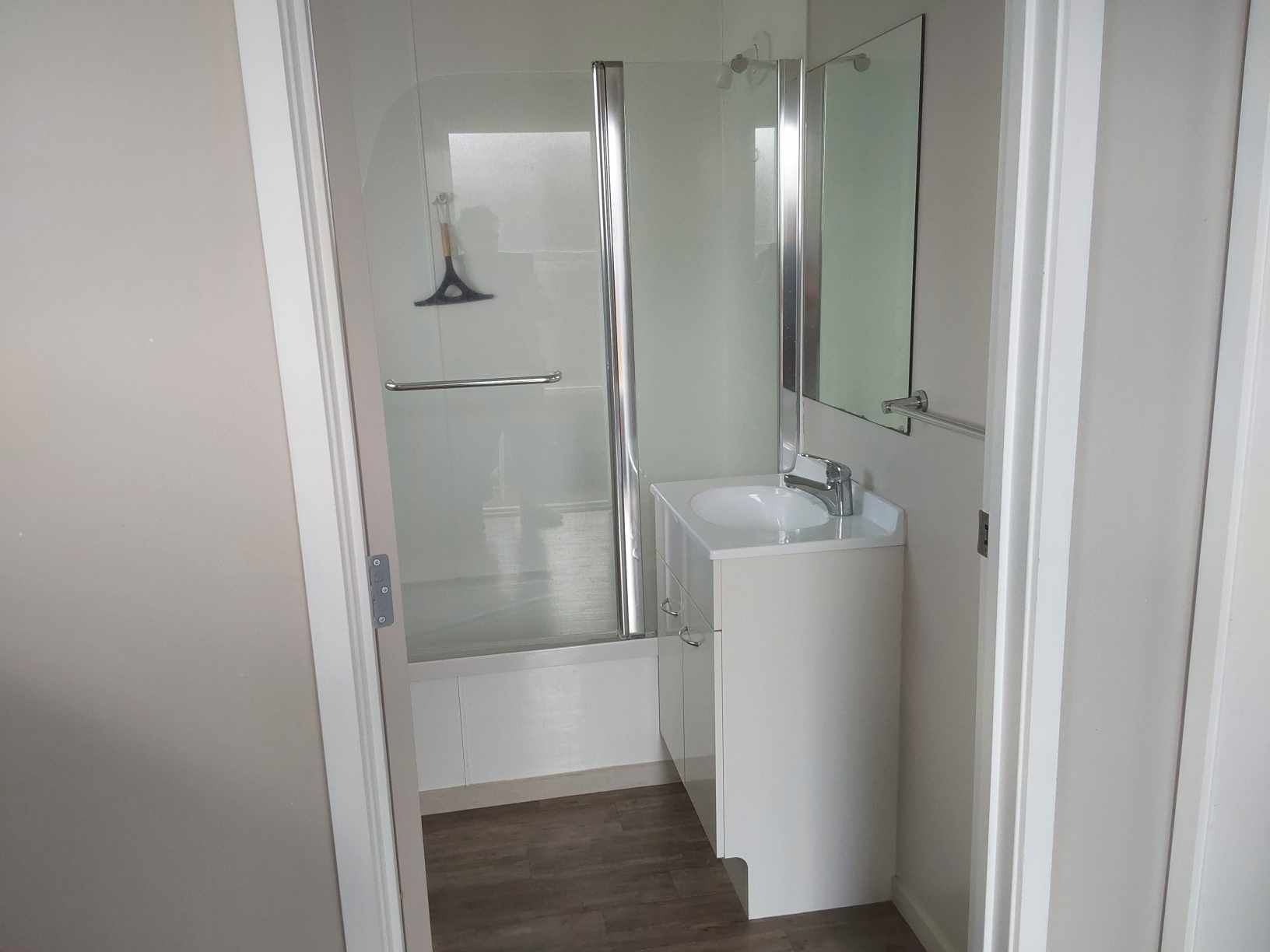 • Shower over bath with fitted handrails. Handrail at back door.