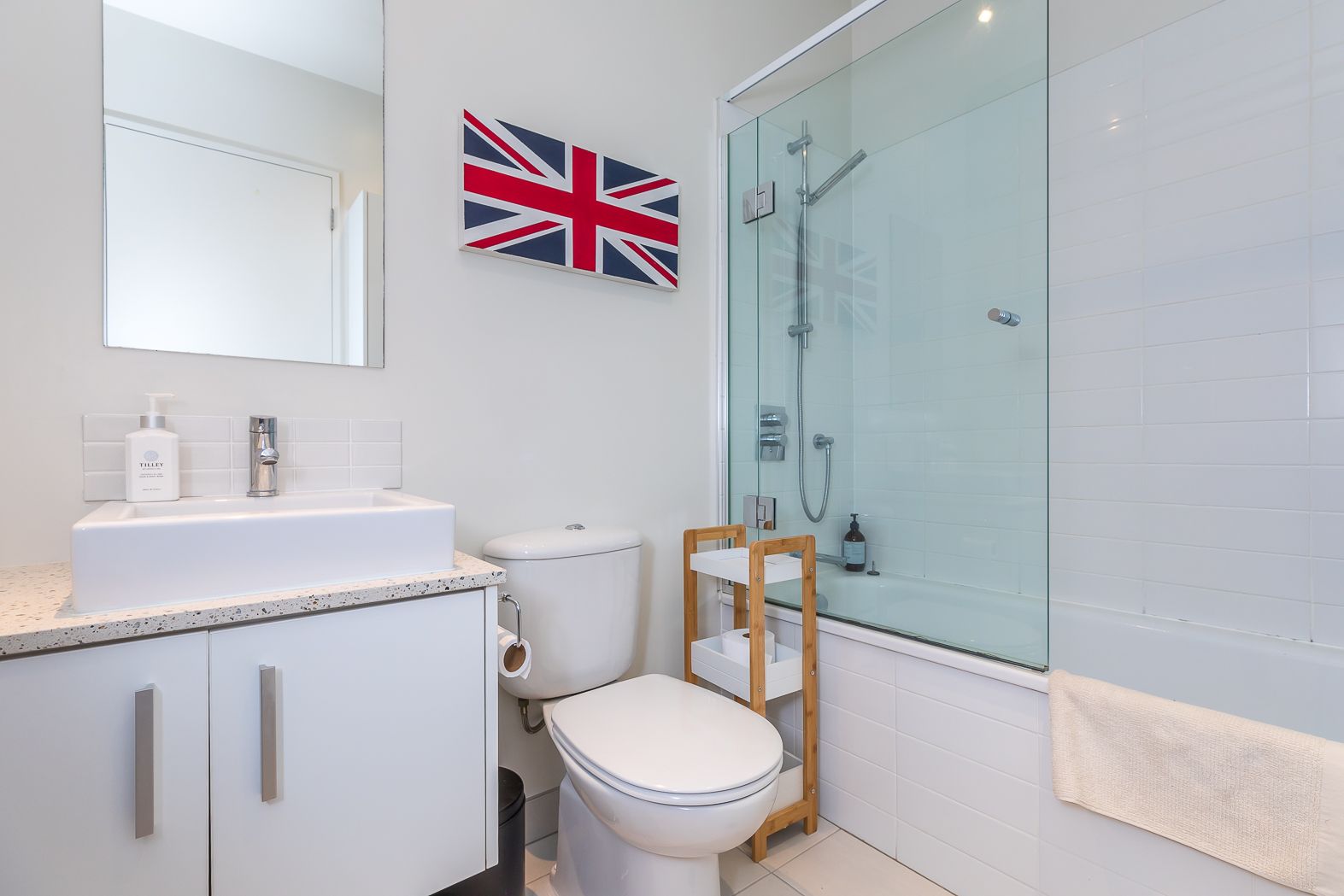 Main bathroom includes shower over bath