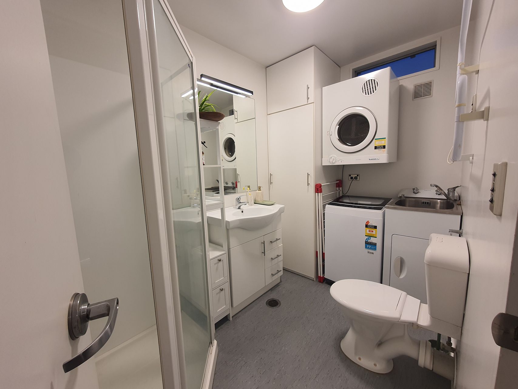 A private, secure motor controlled garage with a small workbench provides space for your car, tools, or bikes – perfect for those who value both security and functionality. An additional off-street carpark in front of the garage is also provided