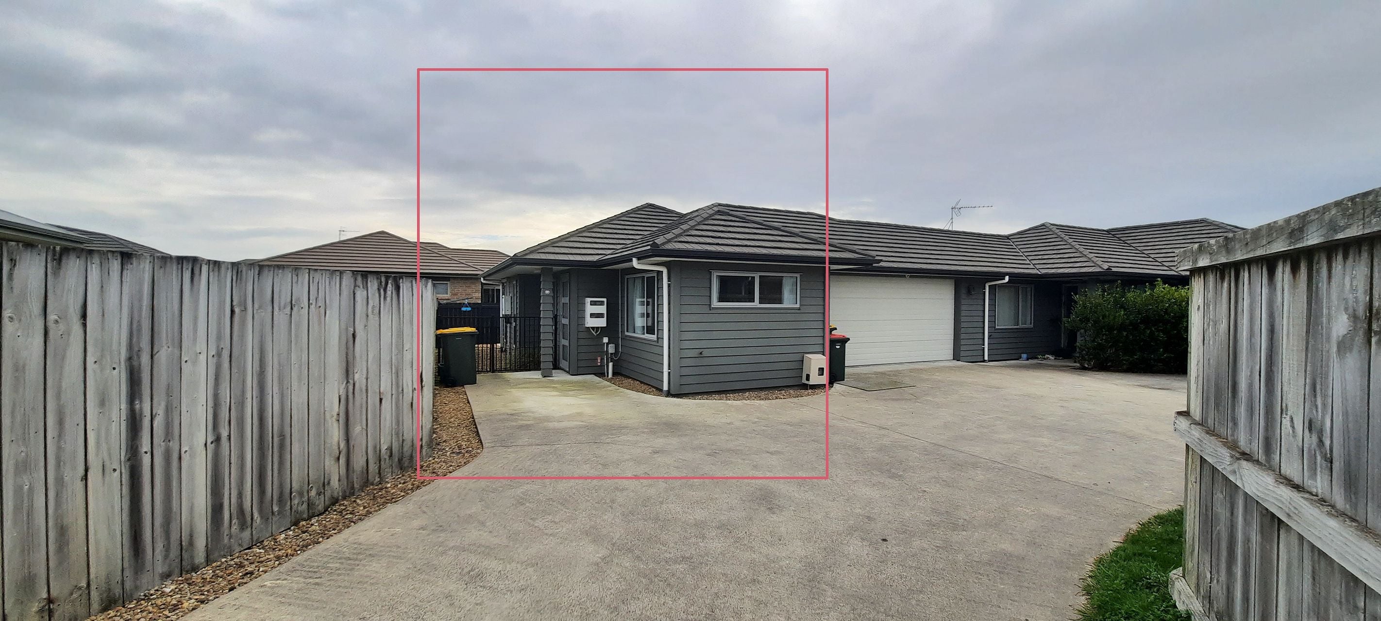 The unit is attached to a larger four-bedroom home, with a shared driveway.