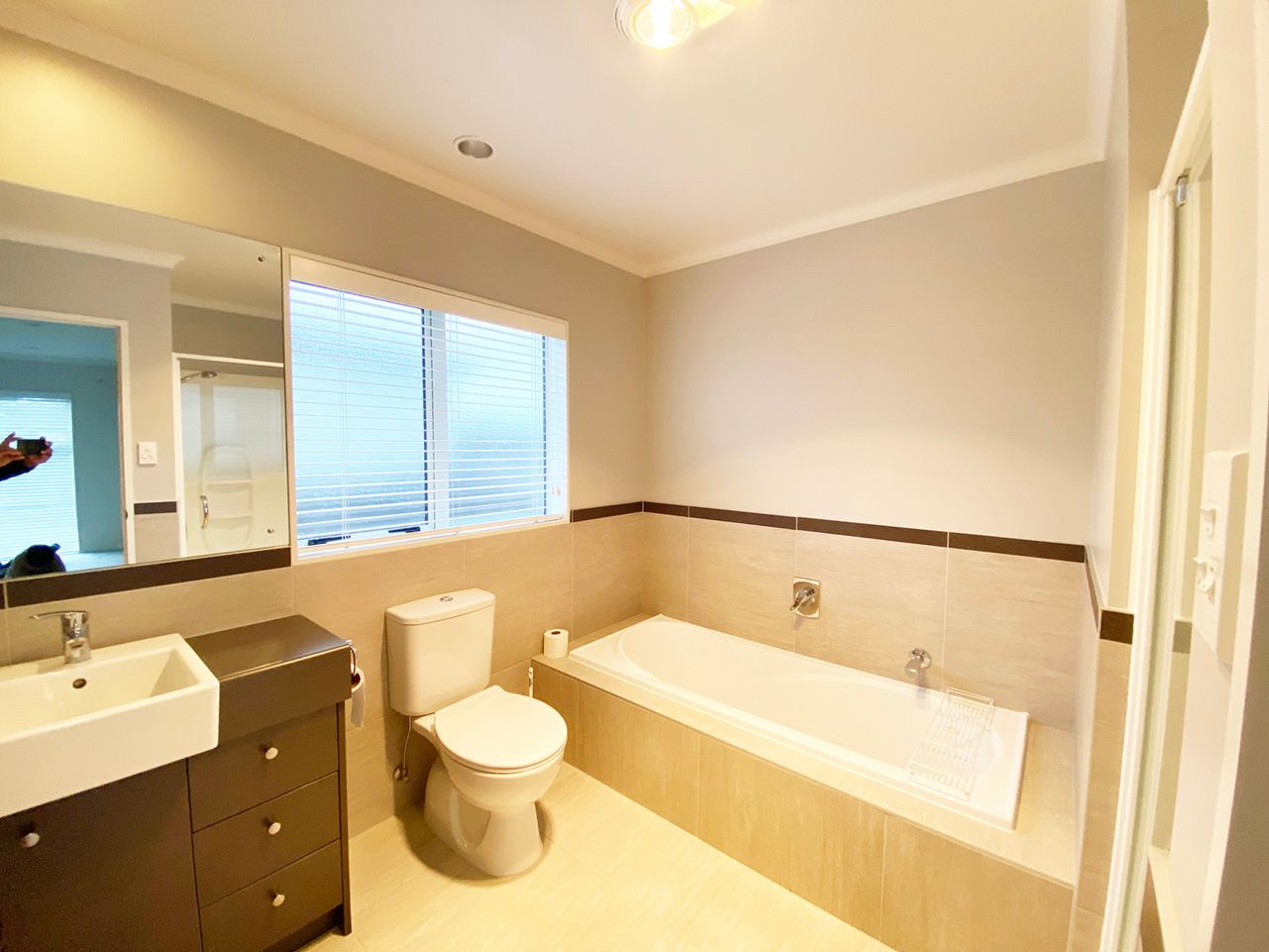 This spacious home has a neat front garden, 5 bedrooms and 3 bathrooms. The kitchen has ample cupboard space and a 5 burner gas stove. The tiled dining room opens out onto a deck which is ideal for entertaining. The open plan living room has natural light flowing from the lounge and dining room. A heat pump is ideally fitted for this space.