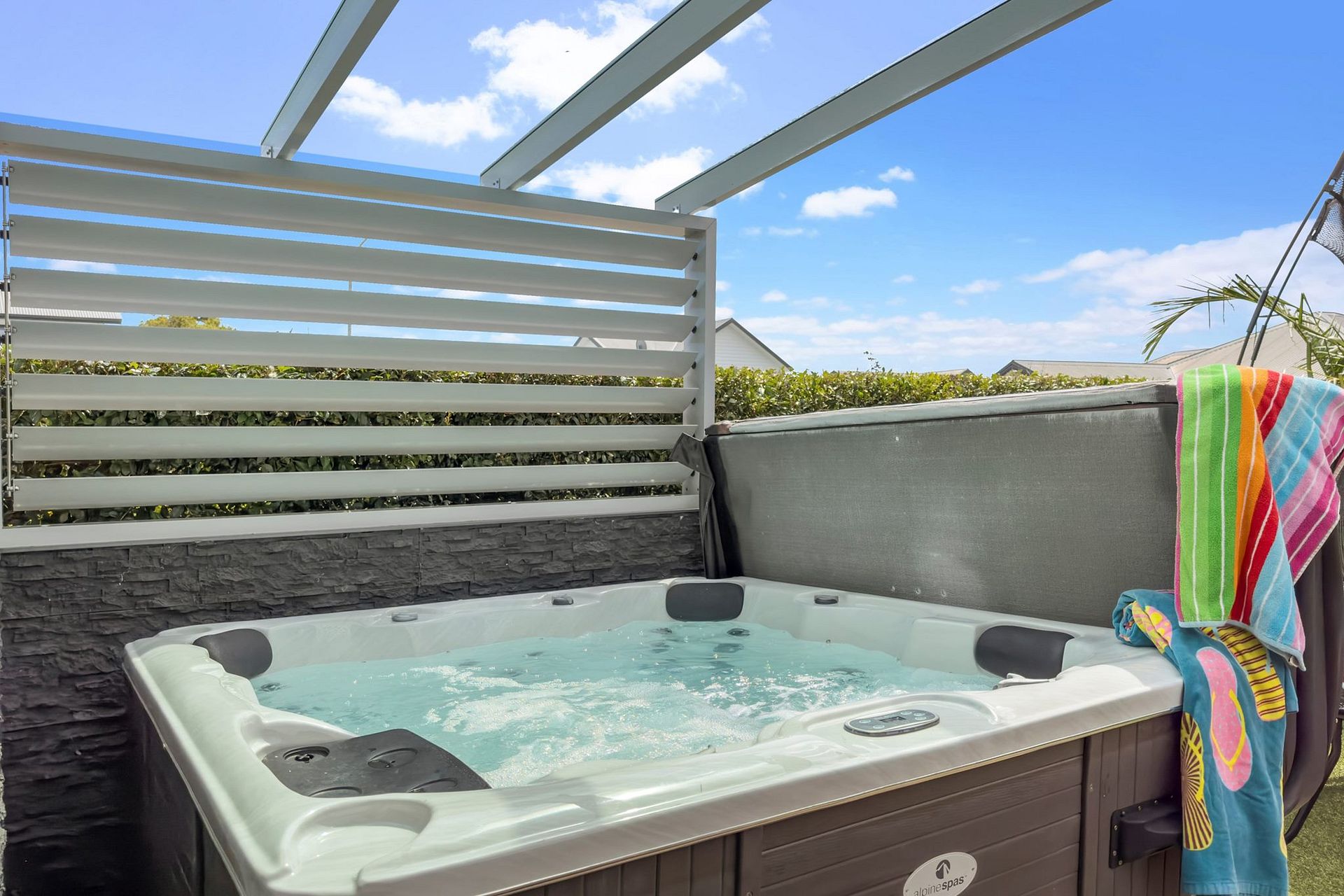 The outdoor living area makes this the perfect family retreat with a hot tub spa pool just waiting! The automated rain sensor louvre roof provides a versatile outdoor living space that can be enjoyed all year round and is perfect for relaxing and entertaining, with plenty of room for a BBQ, outdoor dining, and lounging.