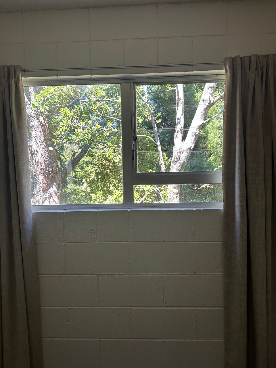 The flat backs onto views of trees.
